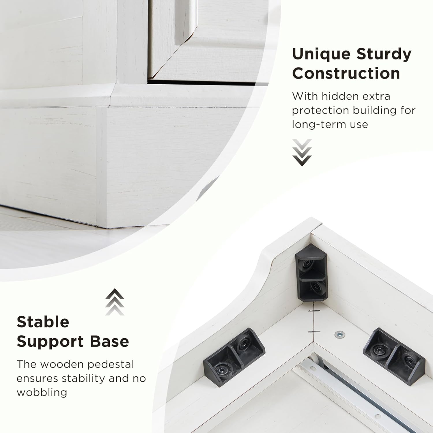 - MODERN FARMHOUSE: The molding details, support pedestal and drawer's bar handles add a romantic touch. The finish highlights the natural beauty of the engineered woodβs grain and hue, which vary slightly from side to side and boast a modern farmhouse flair. This versatile piece will takes decoration easy in spaces
