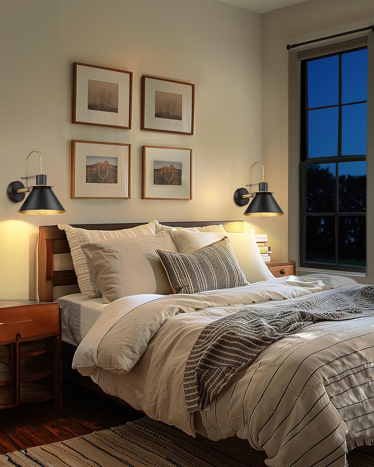 - 【Modern Design】 This single wall lamp compliments the look of almost any indoor or semi-outdoor space, matte black finish decored with brushed gold, the brass interior reflects the light to form an extremely accent contrast. (Attention: Moisture-proof but not waterproof, please keep it away from water)