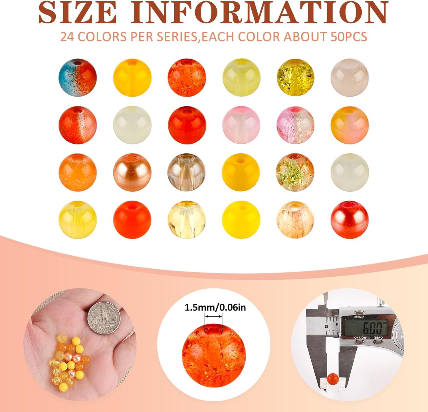 XSEINO About 1200PCS 6mm Glass Beads Bracelet Making Kit,24 Assorted Warm Yellow Wilt Series Colorful Crystal Beads for Bracelet and Jewelry Making and DIY Crafts,Friendship Bracelets
