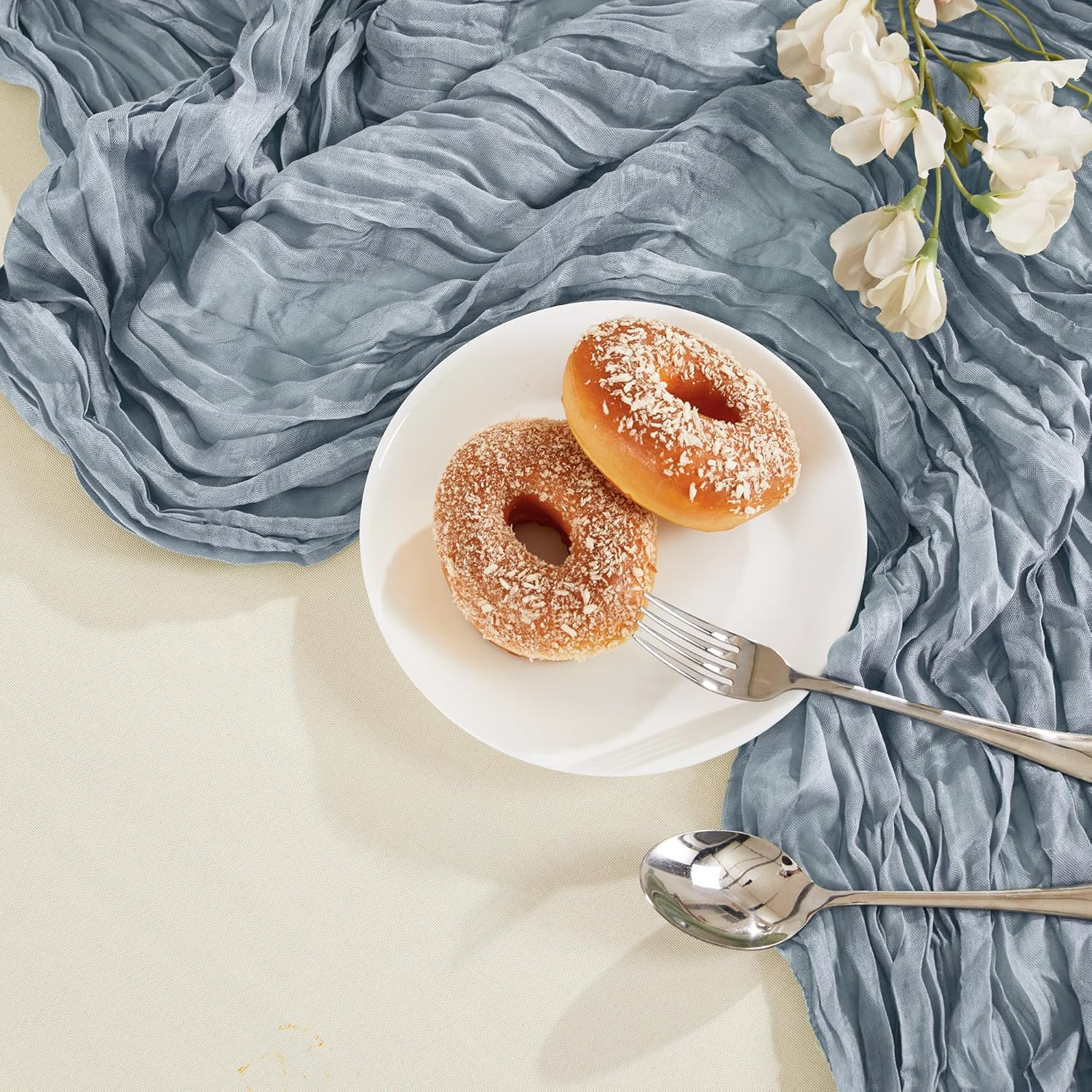 - PACKAGE INCLUDED: You will receive 6 pieces of dusty blue cheesecloth table runners. Elegant and beautiful design, exquisite workmanship. Product size: Each boho table runner is 35 x 120 inches. Enough to cover rectangles and round tables, as well as long tables that are stitched together. It can even be used to belt chairs decorate napkins, background curtains. Round or square tables for 8-10 people, perfect for romantic and elegant party events