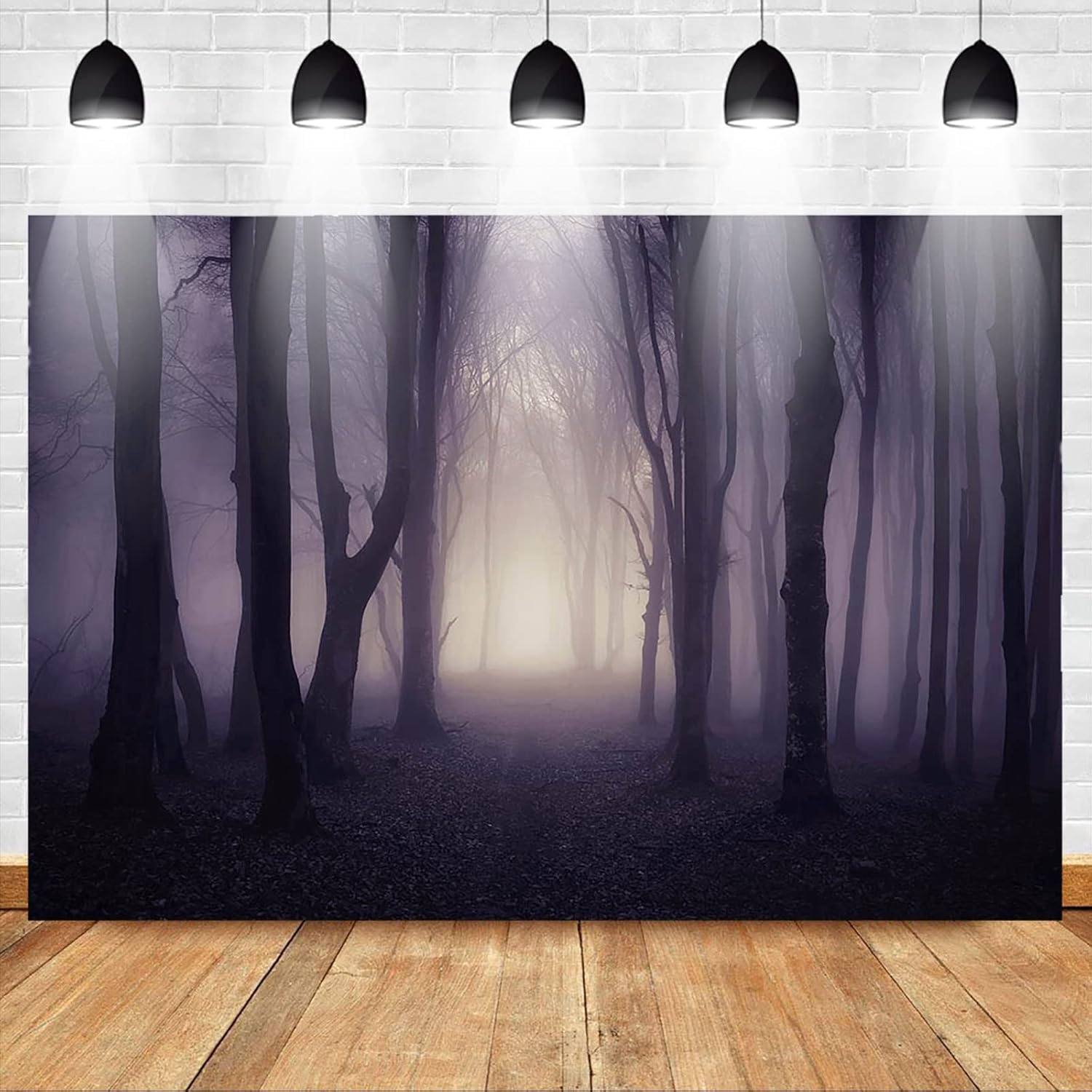 Mocsicka Halloween Photo Backdrop Misty Woods Dark Gloomy Forest Witch Wizard Party Background Halloween Night Ghost Photography Backdrops (8x6ft)