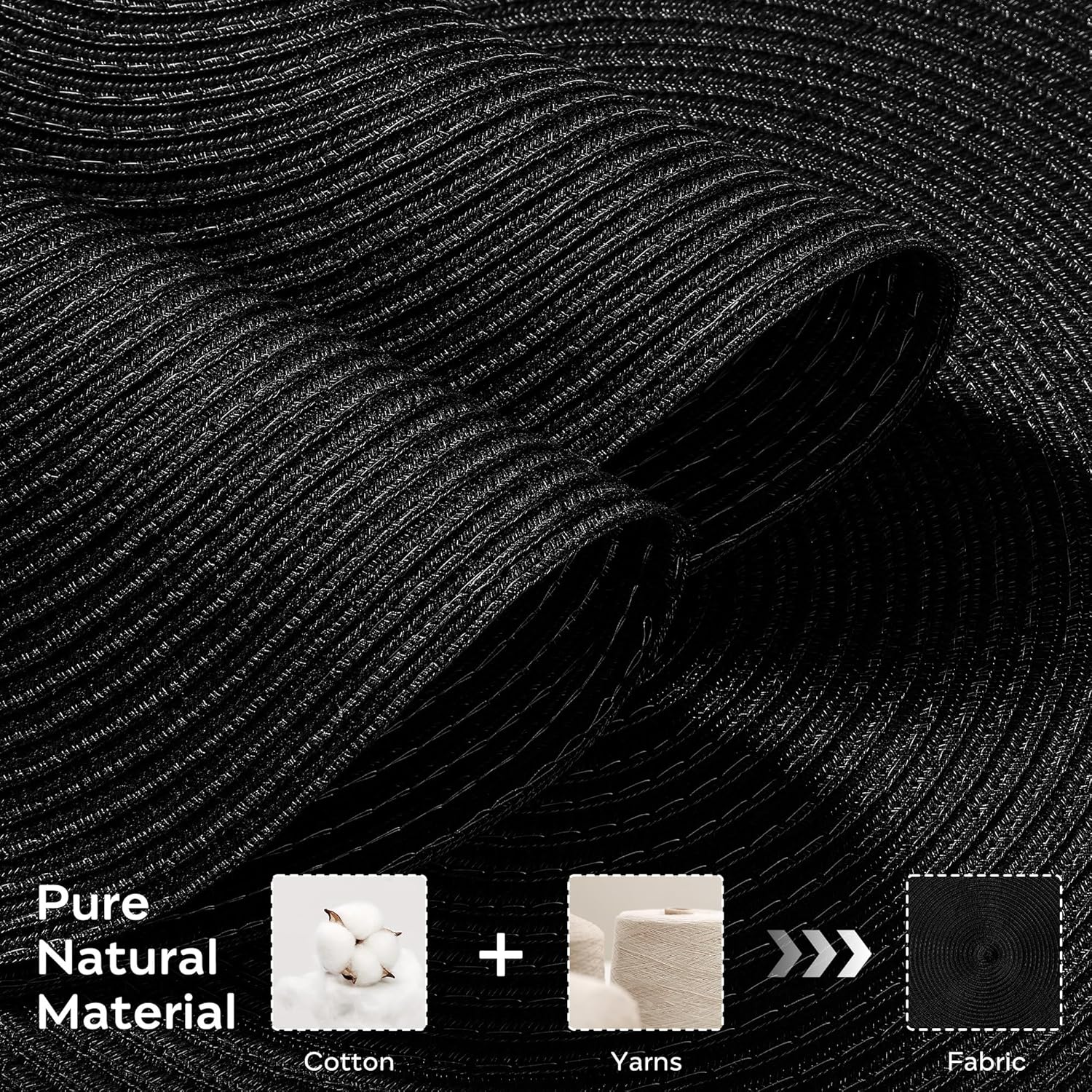 Leetaltree Round Placemats Heat and Slip Resistant Cotton Table Mats, Washable Bohemian Placemats for Dining Tables (Black, Set of 12)