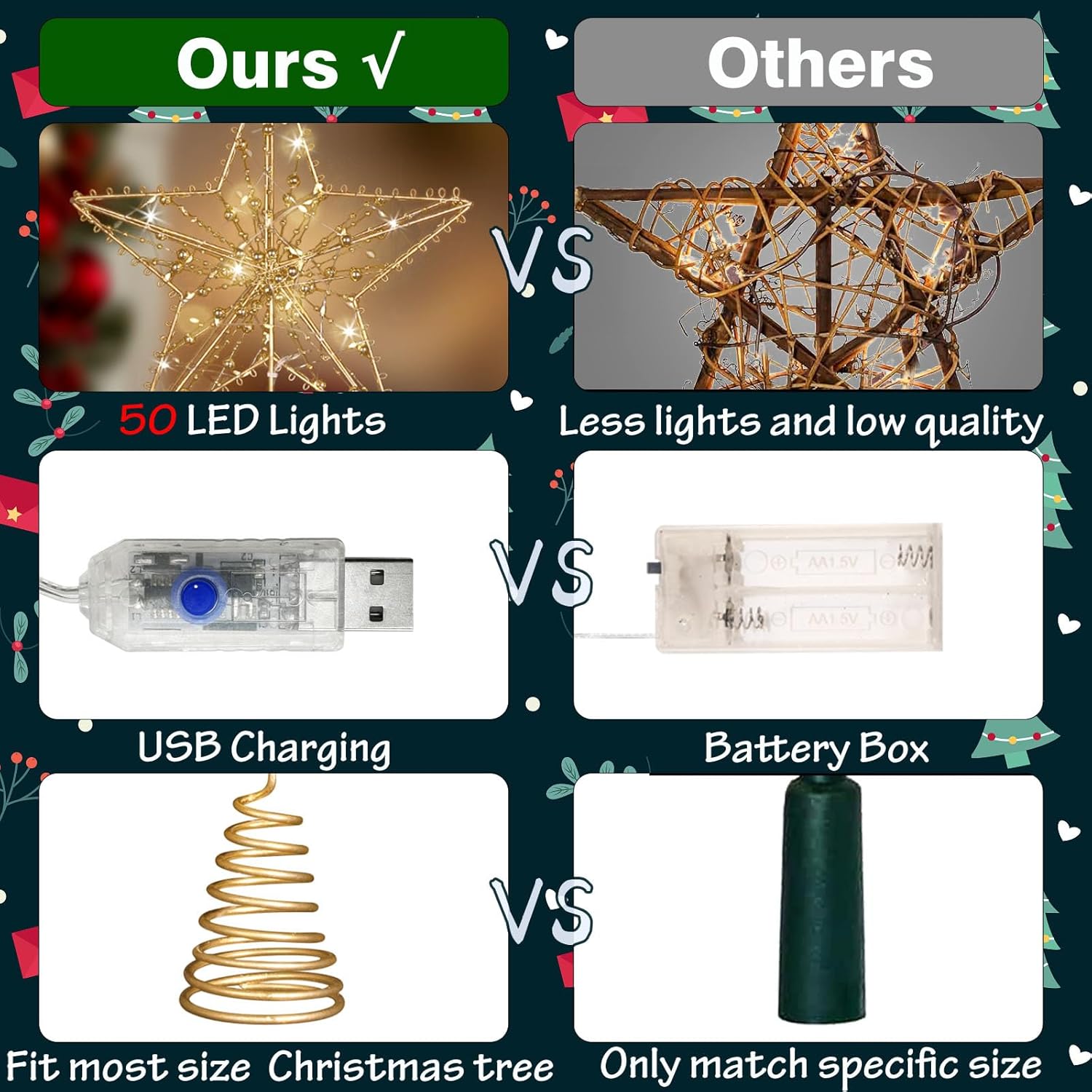 - METAL MATERIAL: It is stable and durable to use metal to produce the tree topper star framework, that could provide a long service life