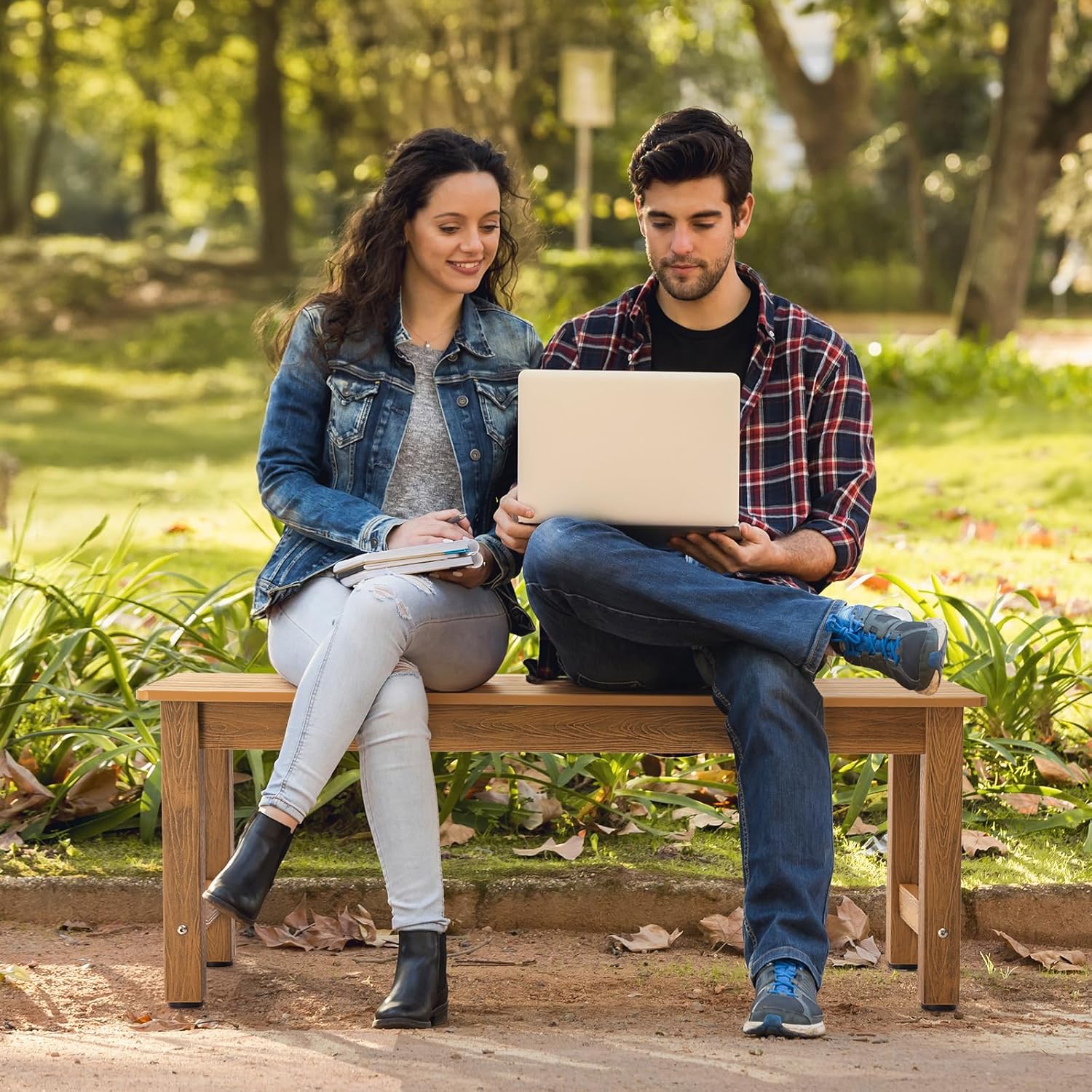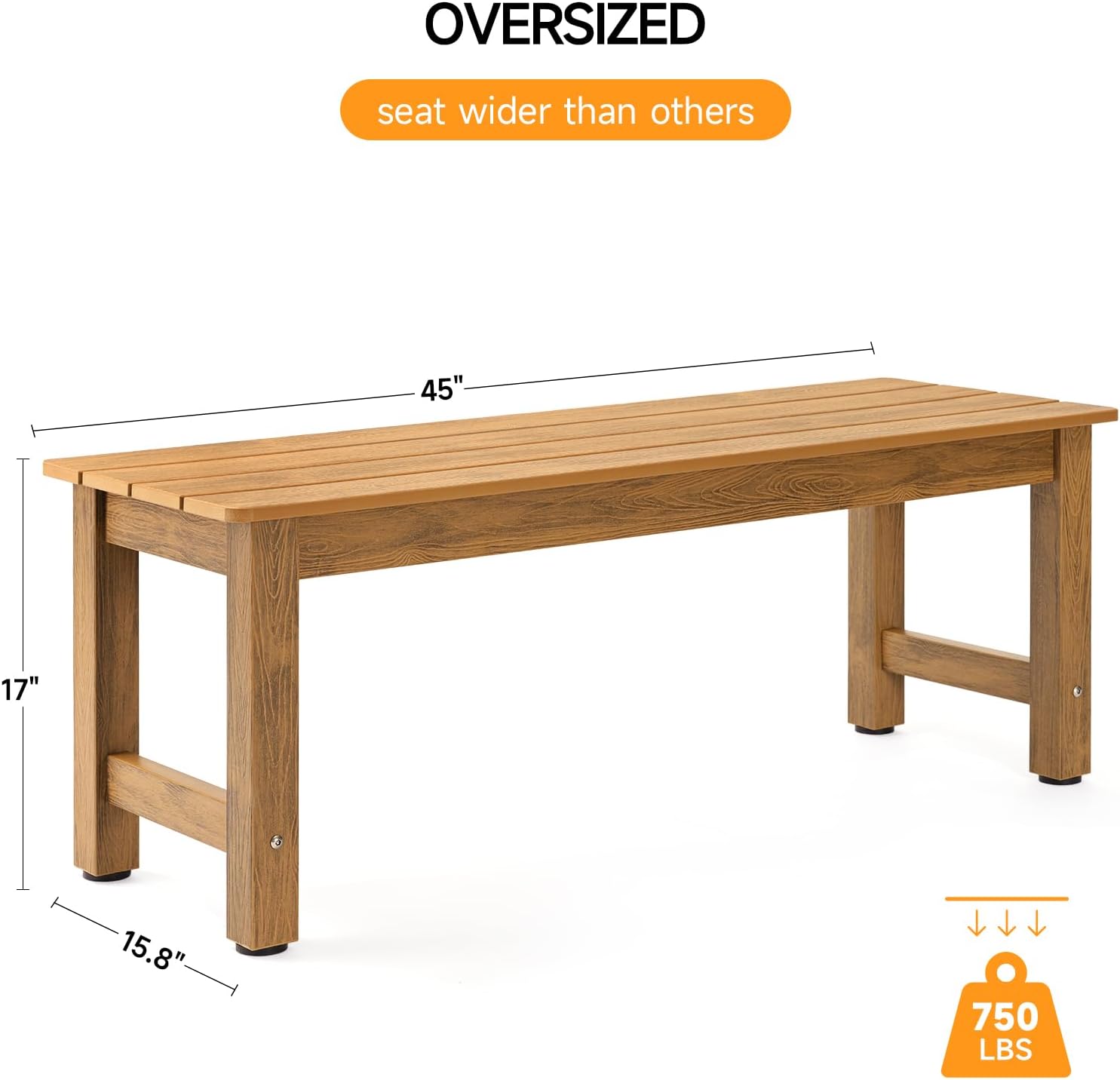 - 【Sturdy and Durable】The backless garden bench is spacious enough for 2 people to sit together. There are reinforced support slats at the bottom of the seat, matched with adjustable foot pads, which can provide enough stability and the maximum weight capacity can reach 750 pounds.