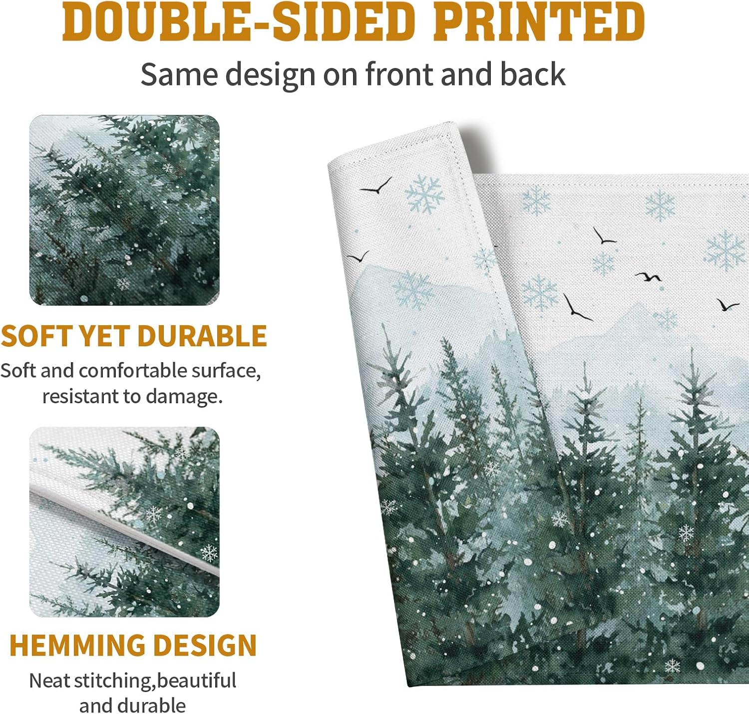 - PERFECTLY SIZE: The pine tree placemats set of 4, Each winter tree place mat is 18×12 inch (45cmx30cm) that can exactly fits your needs to use in all kinds of situations.