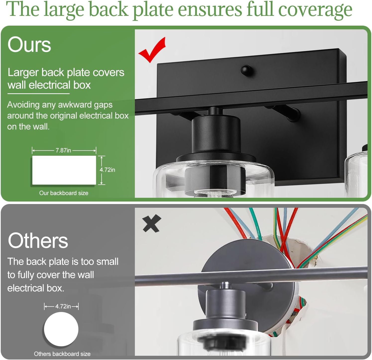 - Timeless Elegance for Any Decor - This 3-light bathroom fixture combines a matte black metal finish with thick clear glass shades, creating a perfect blend of modern and farmhouse styles. Its versatile design seamlessly fits into various home aesthetics, making it an ideal choice for elevating your lighting.