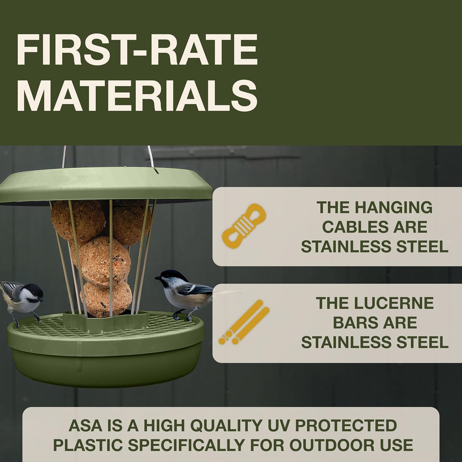 SWISSINNO No Mess Bird Feeder Lucerne Smart Birds for Fat Balls - Feed Birds, not mice & Rats! Robust & Reliable for Hanging - Green