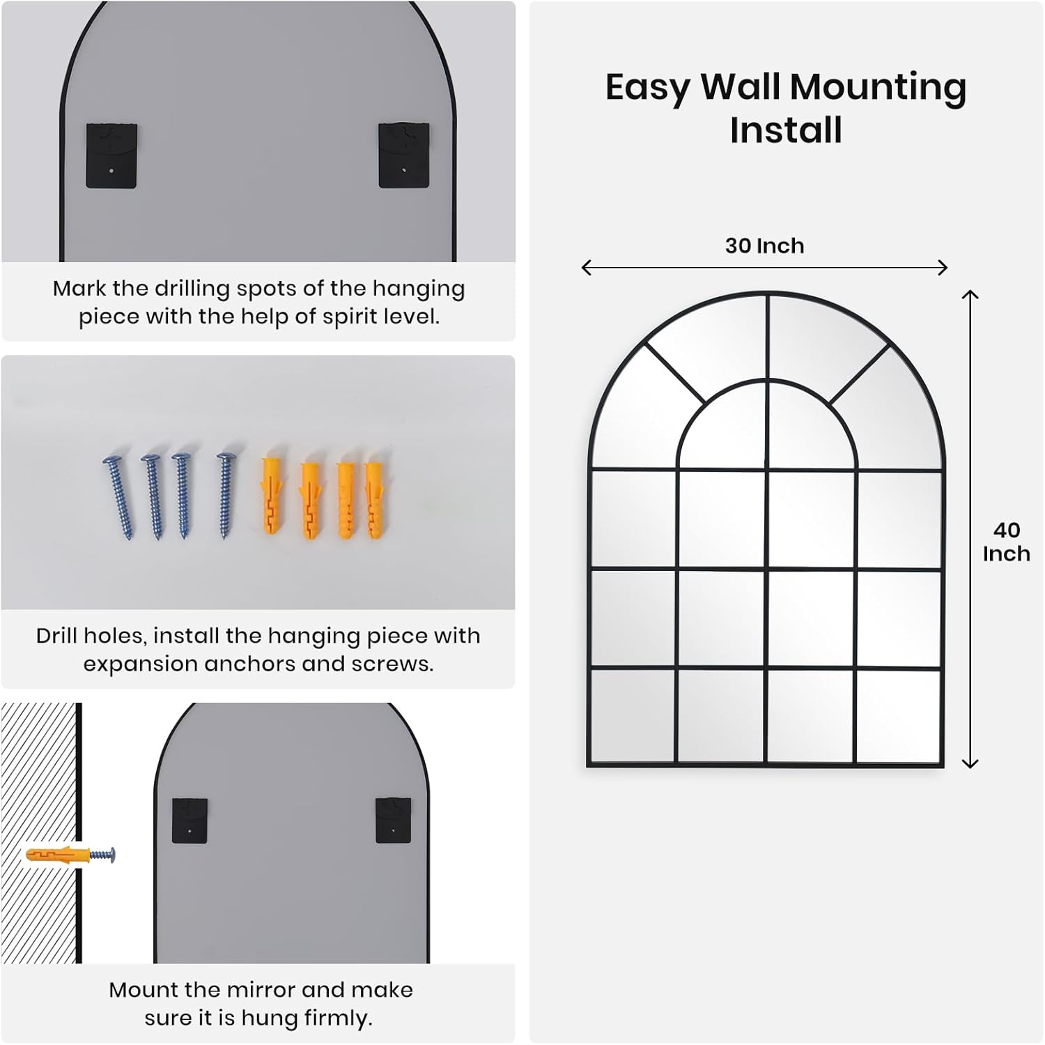 - Gifts For Everyone: This windowpane full length mirror is suitable for everyone you care about. A best gift idea for your mom, wife, partner, deaughter, sister and friend. Package including a full body mirror, installation accessiories and instruction