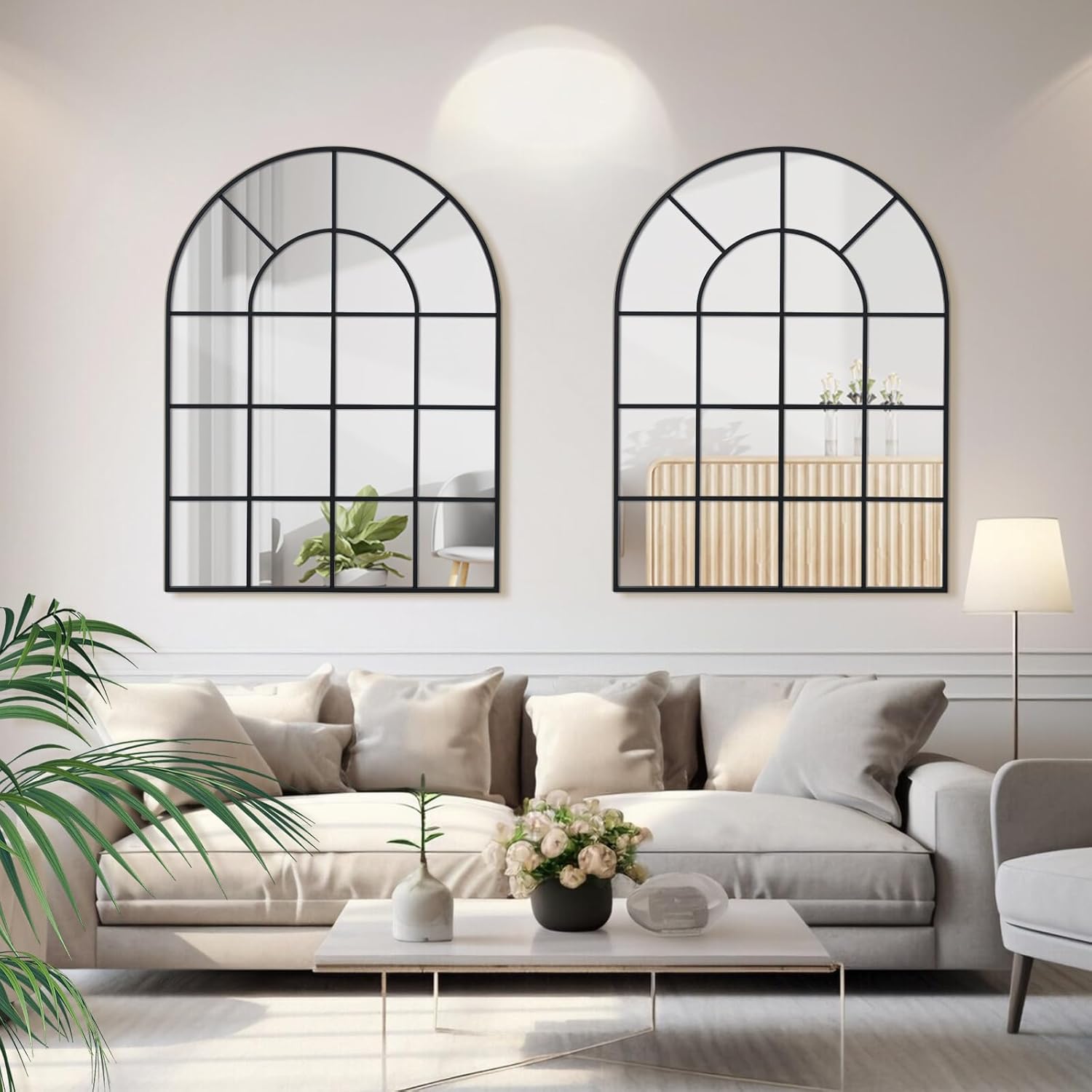 - Art Pane Black Aluminum Alloy Framed Arched Wall Mirror: The mirror features a modern style that can complement any type of room decor, adding a touch of elegance to your room, also great for selfies or pictures in general