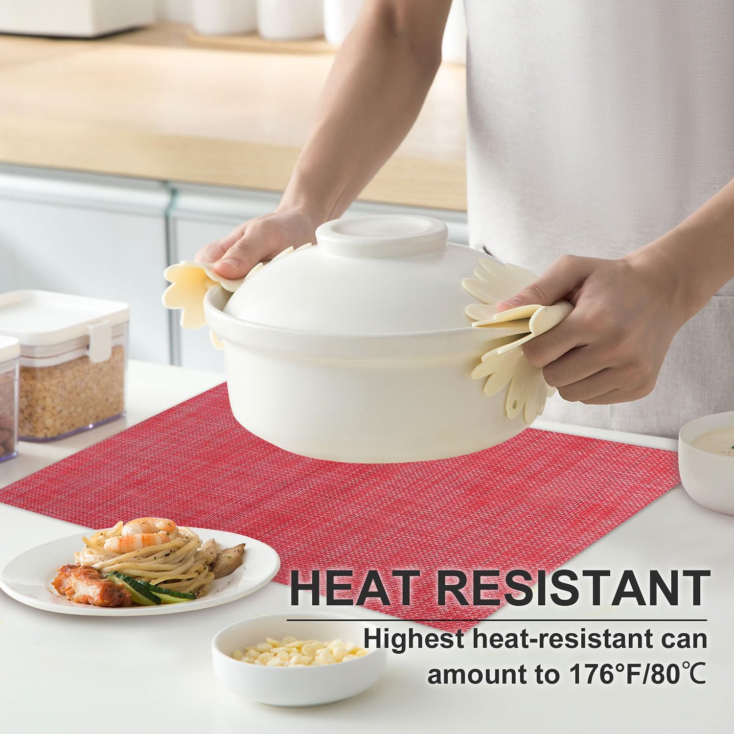 - Heat Resistant: Highest heat-resistant can amount to 176Β°F/80β, they perfectly protect your table from food and heat. Add style to your dining setting while ensuring table protection. NOT waterproof