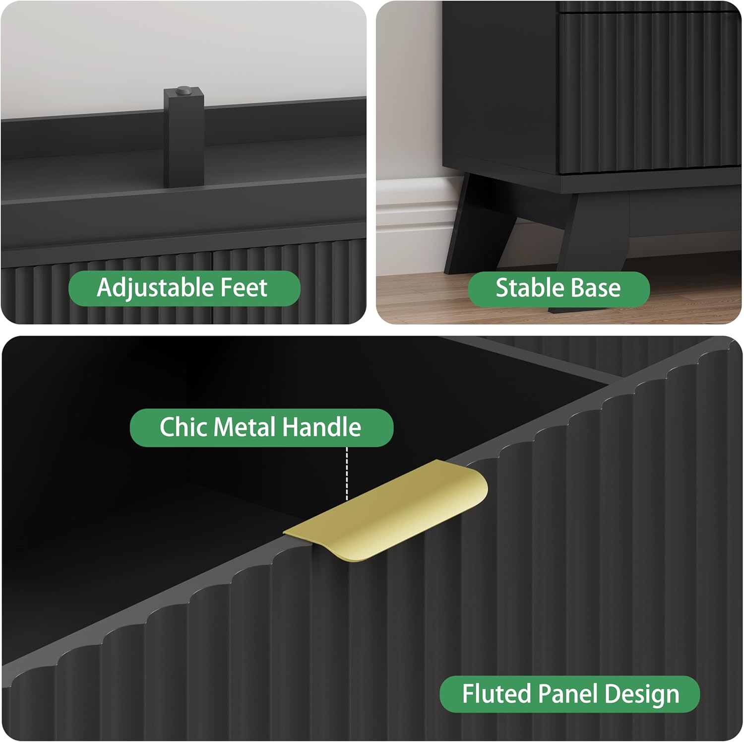 - 【Modern Chic Appearance】The unique wave-like fluted panel enhances the texture and elegance of this bedroom dresser. The thick table top features natural wood grain that complements the black finish. The wide metal handle and splayed base legs add a modern touch, creating a personalized and distinctive appearance