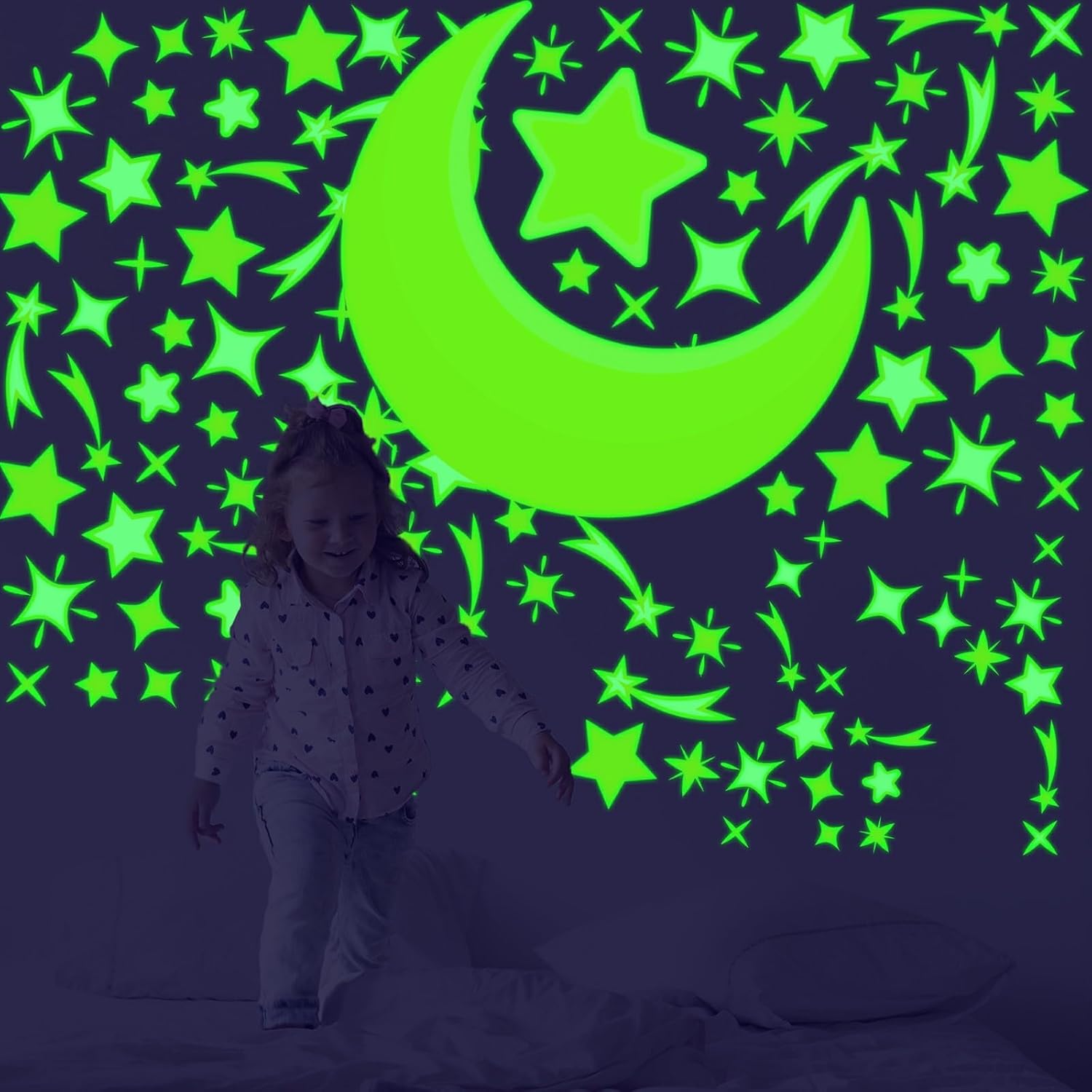 Glow in The Dark Moon Stars Stickers, 150 PCS Glowing Luminous Falling Star Wall Decals Moon Star Ceiling Stickers for Kids Boys Girls Bedroom Nursery Playroom Party Room Decor