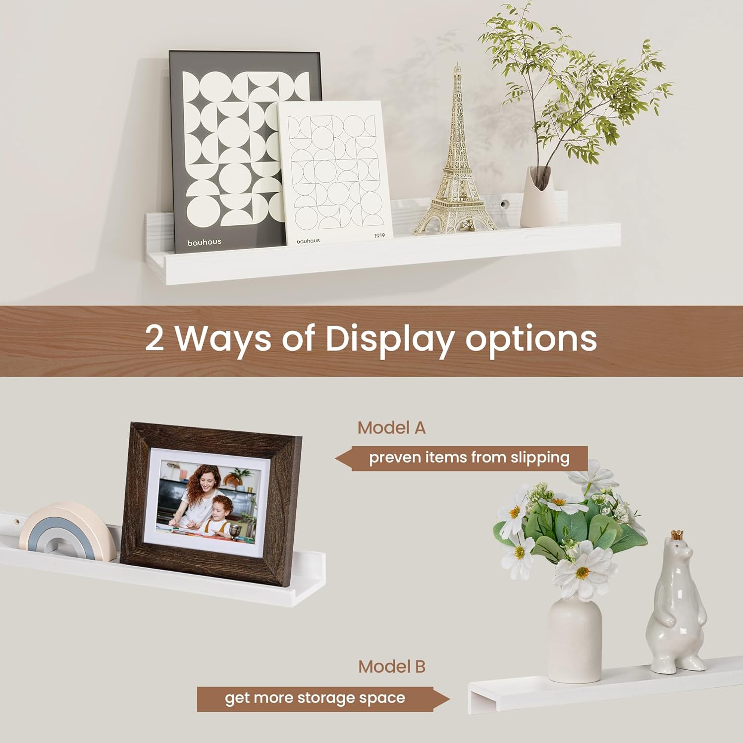 - Chic Minimalist Design: Solid pine wood picture ledge shelves available in multiple colors and sizes, these picture shelves complement any decor, from modern to farmhouse. Use them alone or in a gallery-style arrangement to create a stylish focal point