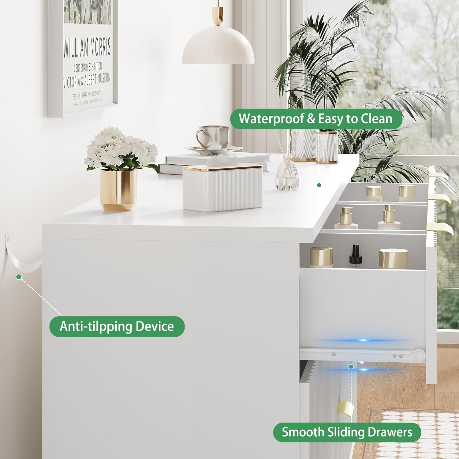 - 【Solid Material & Study Construction】The dressers & chests of drawers are constructed from optimal MDF, P2 engineered wood and coated metal handle which not only has exquisite texture, but also ensure long-term use and scratch resistant. Each drawer holds up to 25 lbs and the thickened tabletop can support up to 180 lbs. For easy cleaning, just wipe with damp cloth and get it air-dried