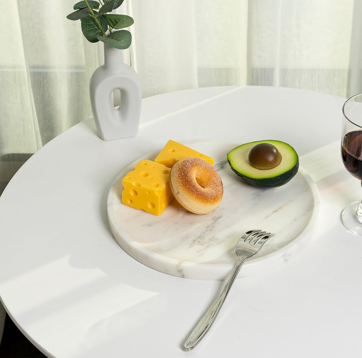 - Suitable Size: Our small round marble tray measures D9.8โx H0.7โ. This bathroom counter tray fits bathroom washstands, kitchen counters, coffee tables, bedroom dressers, vanity tops, and bedside tablesโideal for organizing and enhancing your space