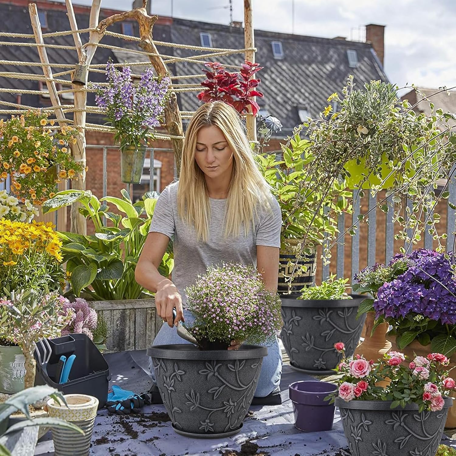 - 【High Quality Materials】8 inch flower pots are made with recyclable ABS,lightweight, so you can lift it easily. Outdoor planter resistant to withstand harsh sunlight and harsh winters without breaking down over time or faded,suitable for home and garden herbs,mints,cactus and snake plants for Plants Growth, you can use it indoors and outdoors freely.
