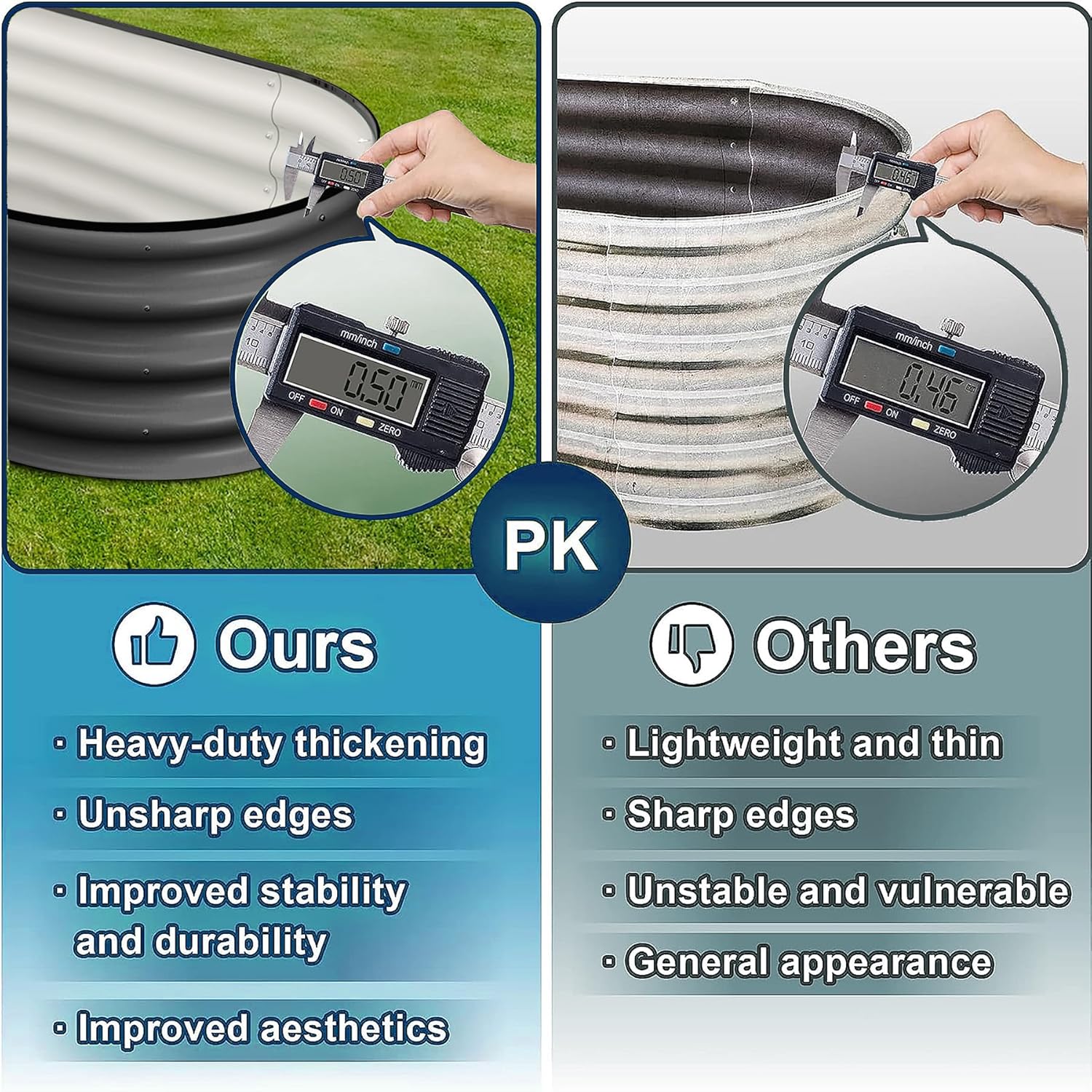 - π³ Unmatched Stability: Crafted with 0.5mm thick overlapping galvanized panels, reaching up to 1.8mm at the seams, our raised garden bed provides excellent strength and stability. The integrated screw fastening edge and unique oval form ensure it remains solid and secure, even when fully planted.