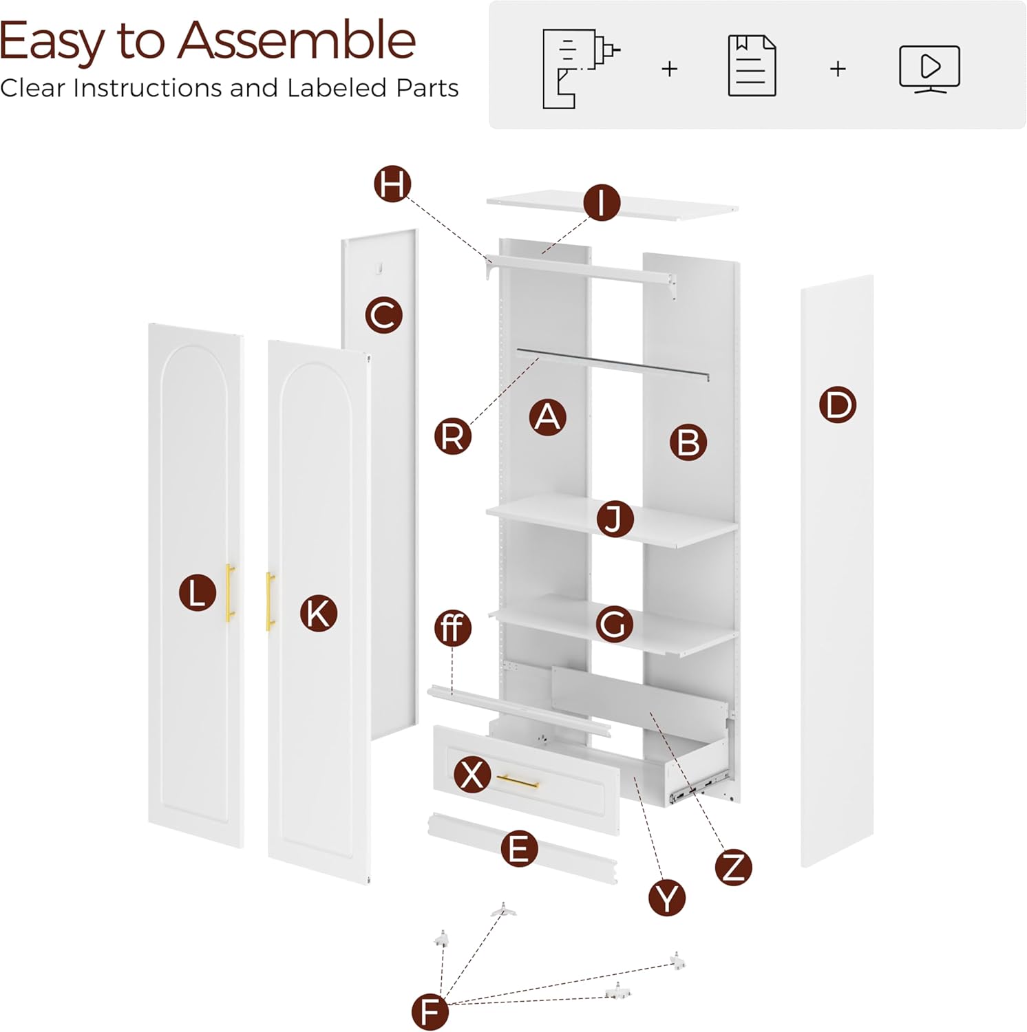 - Easy installation: Our wardrobe armoire comes with clear and complete parts and detailed installation instructions. One person can also assemble it quickly. Upgrade your bedroom storage with a high wardrobe!