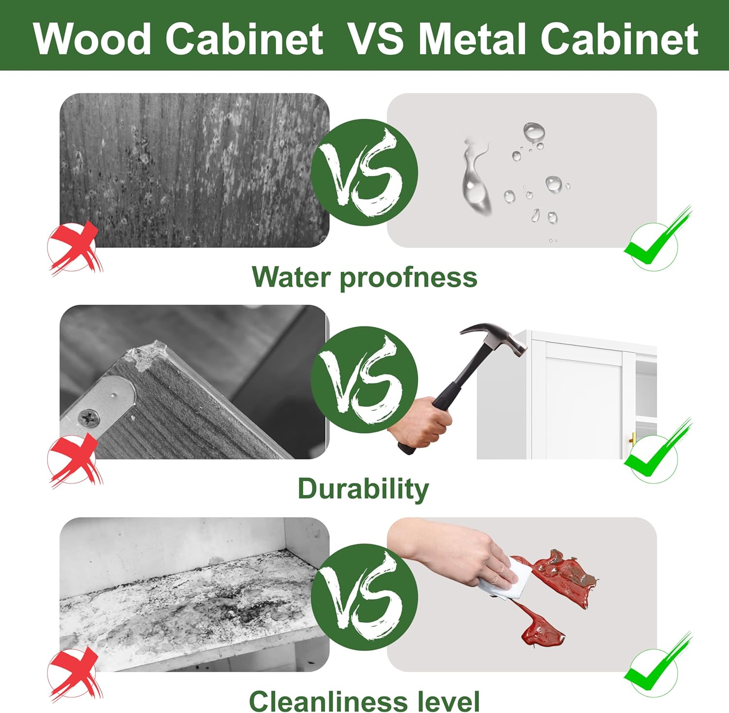 - 🛒【Design to Prevent Tipping】: The metal cabinet has an anti tipping configuration and can be fixed on the wall to prevent the cabinet from tipping over during use.