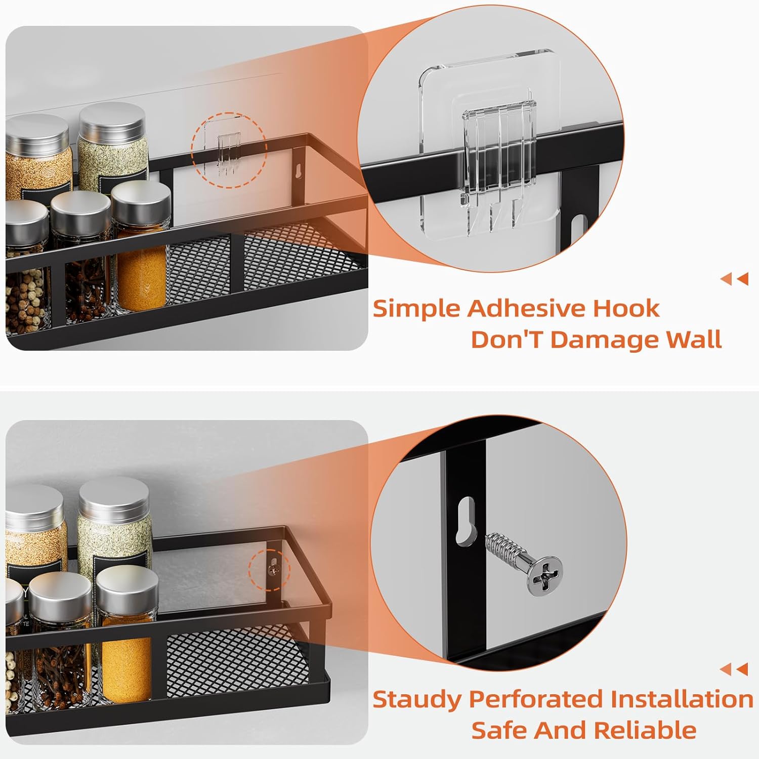 - Premium Metal Material and Stable Storage: The spice rack wall mounted is made of thickened high-strength carbon steel๏ผis waterproof, rustproof, easy to clean.Our spice rack comes with additional 2.76-inch side guards and reinforced adhesive stickers to ensure safety and stability.