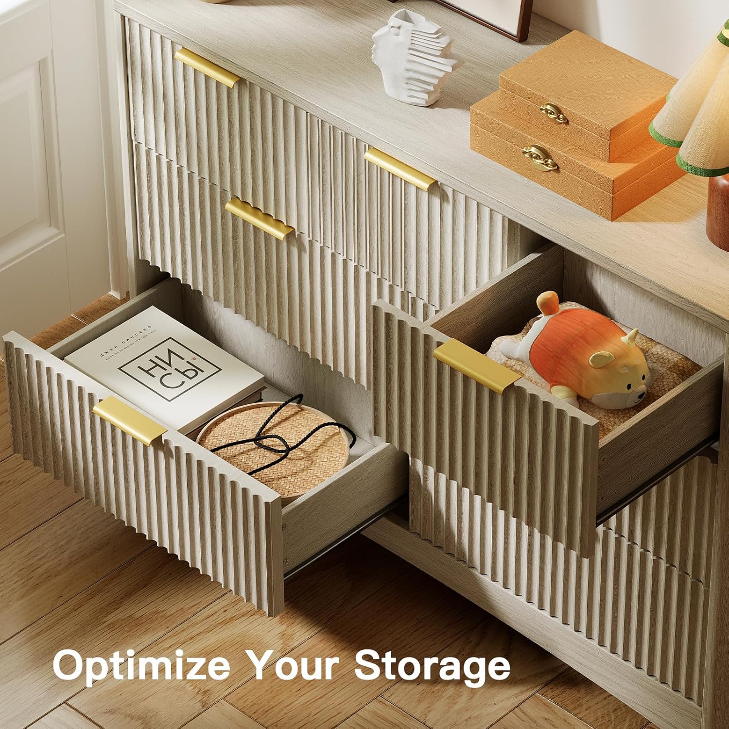 - 【Large Storage Capacity】The fluted dresser is equipped with 7 spacious drawers, capable of accommodating over 80 garments, 30 toys, 60 tissues, 80 skirts, 70 hats, and 130 pairs of socks. This generous storage space allows for the organized arrangement of clothing, bedding, cosmetics, or jewelry, thereby assisting you in maintaining a clean and orderly environment.
