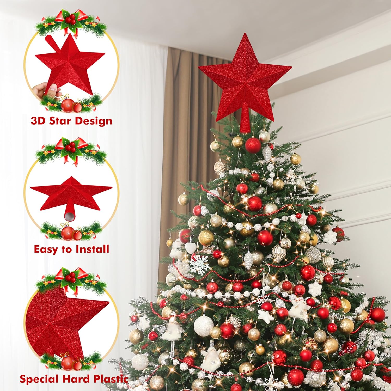 - Essential Festive Decor - Adorn Homes, Offices, and Holiday Parties with Our Star Tree Topper for a Truly Spirited Christmas Celebration!