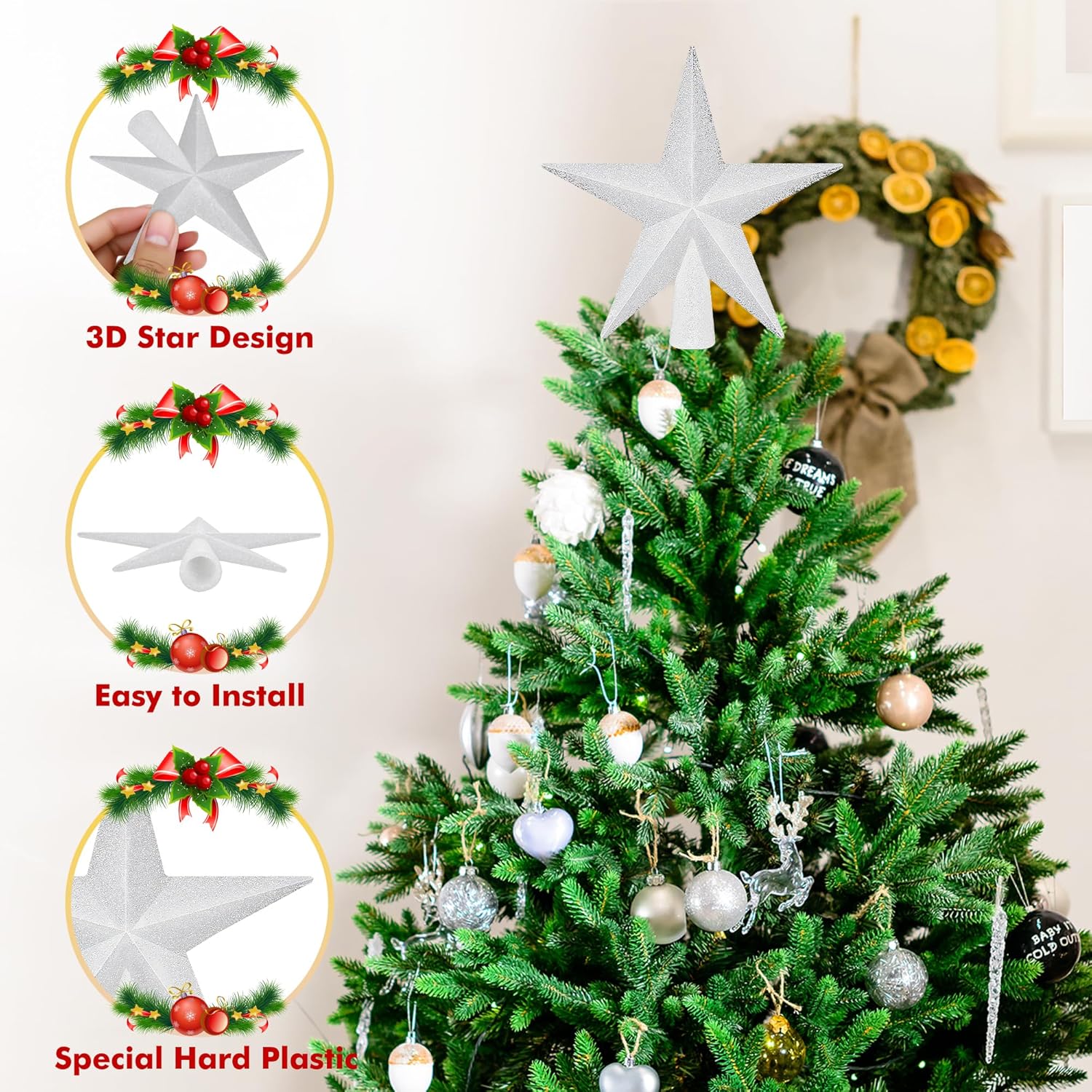 - Quick & Easy Installation – With a convenient base hole, this lightweight white tree topper attaches securely to your Christmas tree and stays firmly in place all season