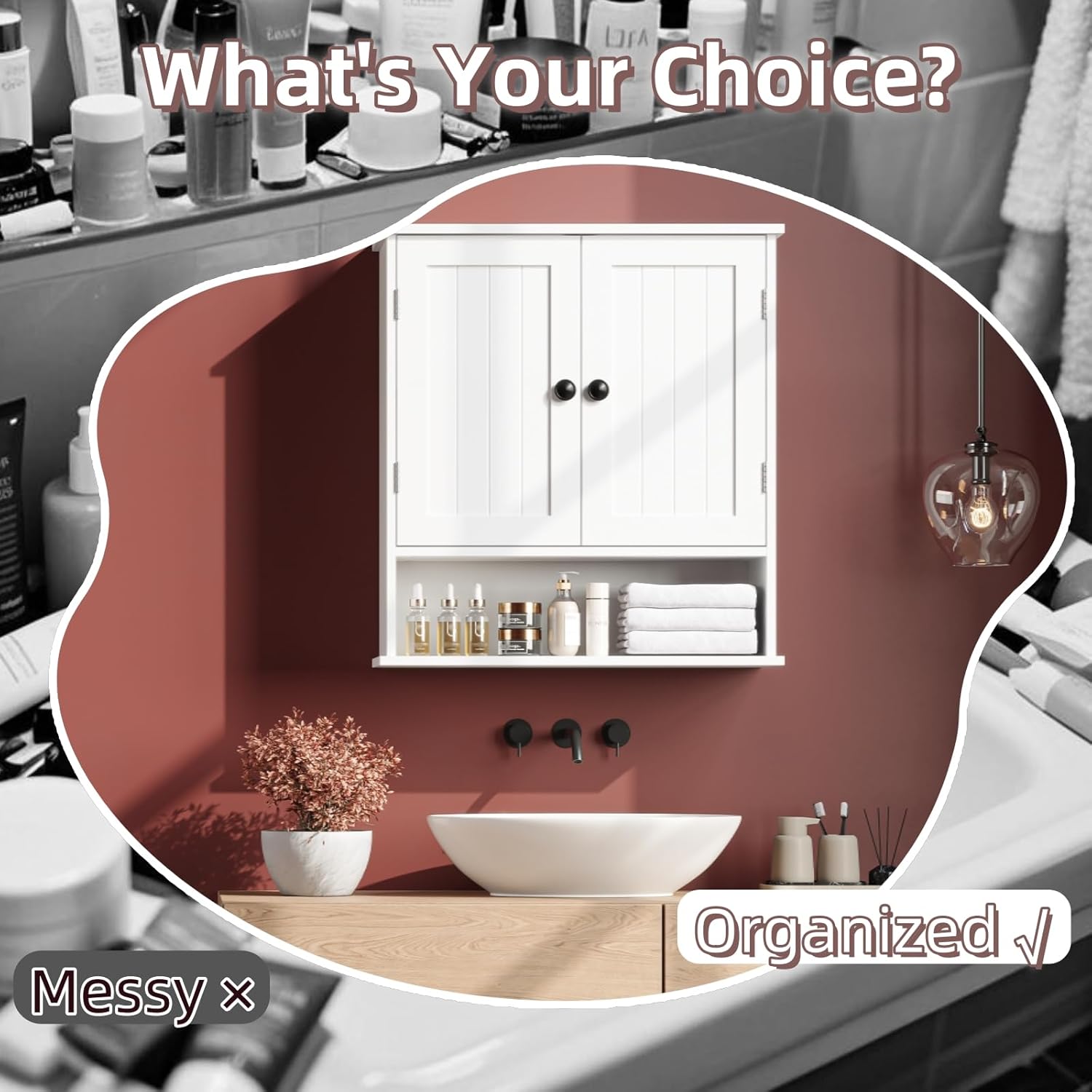 - Defy Humidity β Stay Pristine for Years! β Steamy showers? No problem! The wall cabinet moisture-proof MDF core + waterproof coating fights warping and stains. No more soggy shelves or peeling paint β just crisp white elegance.