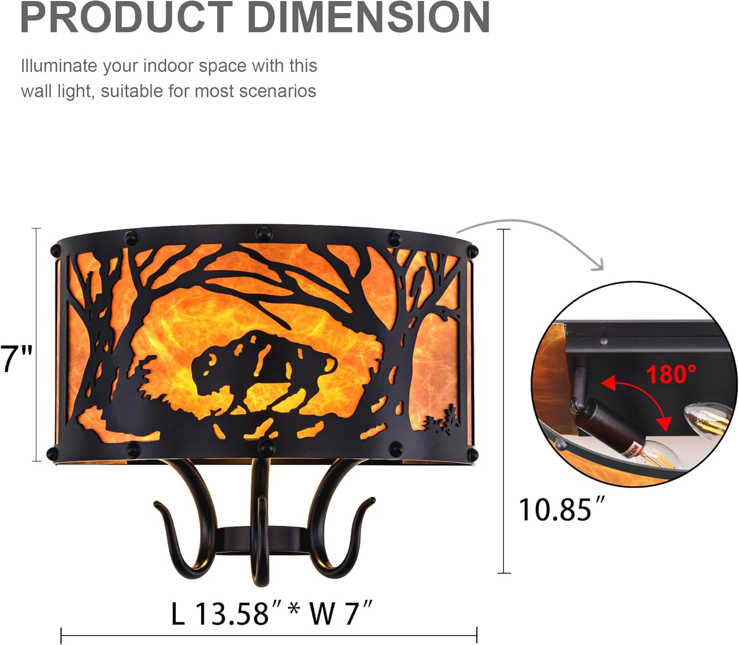 - Compact and Versatile Size: Measuring just 13.58 inches in diameter and 10.85 inches in height, this indoor wall light fixture fits seamlessly into spaces like corners, stairways, or entryways without overwhelming your decor