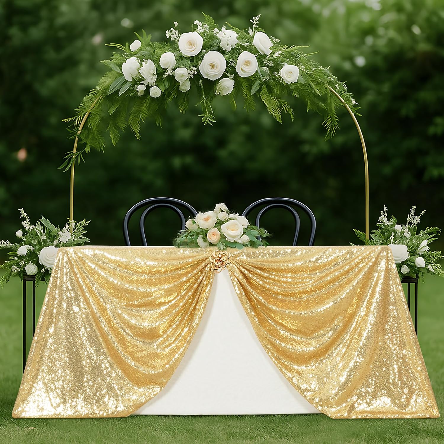 - Material: This is a very beautiful tablecloth. Countless sequins are sewn on the mesh fabric, which not only adds color, but also reflects light, shining like stars.