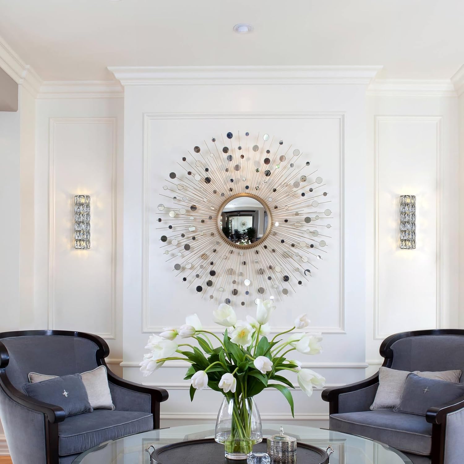 - 【Widely Application】This crystal wall light is ideal for the bathroom, over-vanity mirror, bedroom, dressing table, living room, hallway, foyer, porch, kitchen, and more.