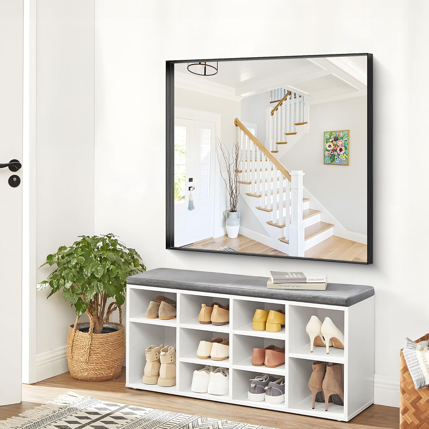Black Bathroom Mirror, 42x42 Inch Rectangular Framed Mirror, Large Wall Mounted Bathroom Vanity Mirror Over Sink for Bedroom,Restroom, Living Room, Hangs Vertically or Horizontally