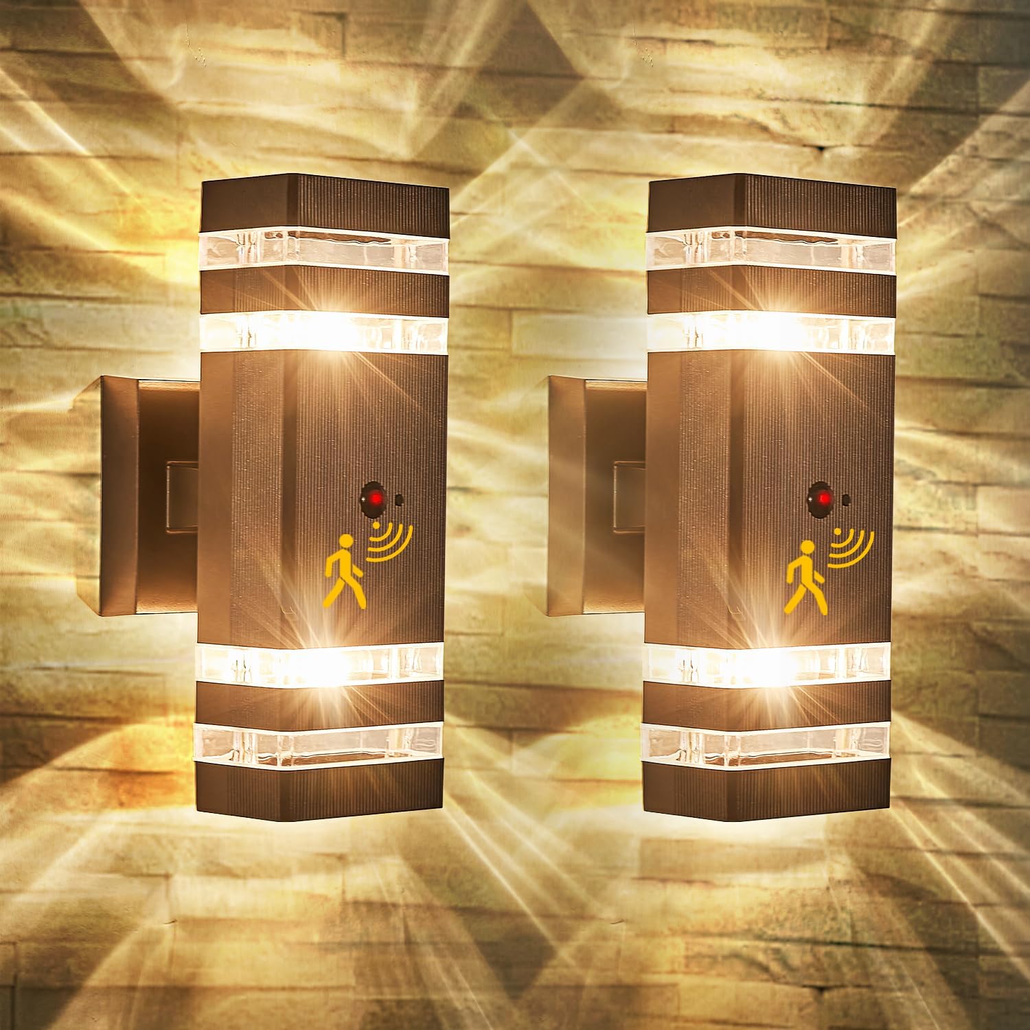 - ❗❗❗【Upgraded Motion Sensor】These motion sensor outdoor lights combining the advanced PIR motion sensor & IC light sensor. Featuring with dusk to dawn function, these motion sensor lights will auto turn on at dusk and off at dawn. Furthermore, with upgraded motion sensor, the outdoor motion sensor lights will auto light up your space with full brightness when motion detected at night.