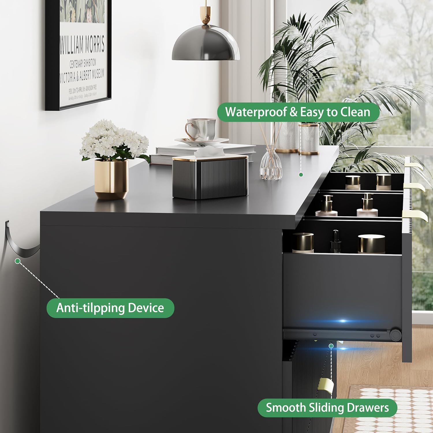 - 【Solid Material & Study Construction】The dressers & chests of drawers are constructed from optimal MDF, P2 engineered wood and coated metal handle which not only has exquisite texture, but also ensure long-term use and scratch resistant. Each drawer holds up to 35 lbs or 15 lbs and the thickened tabletop can support up to 150 lbs. For easy cleaning, just wipe with damp cloth and get it air-dried
