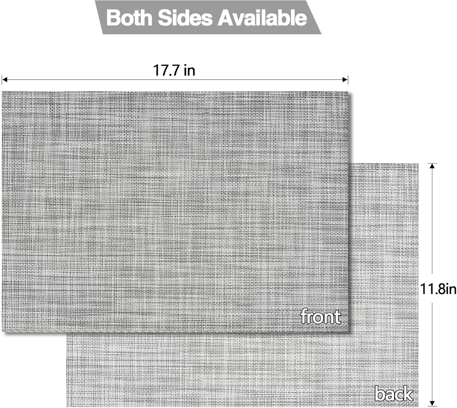 Placemats Set of 8 - Easy Clean Washable Vinyl Placemats - Wipeable Heat Resistant Table Mats for Dining Table - 17.7x11.8 Inch (8, Black & White Two-Tone)