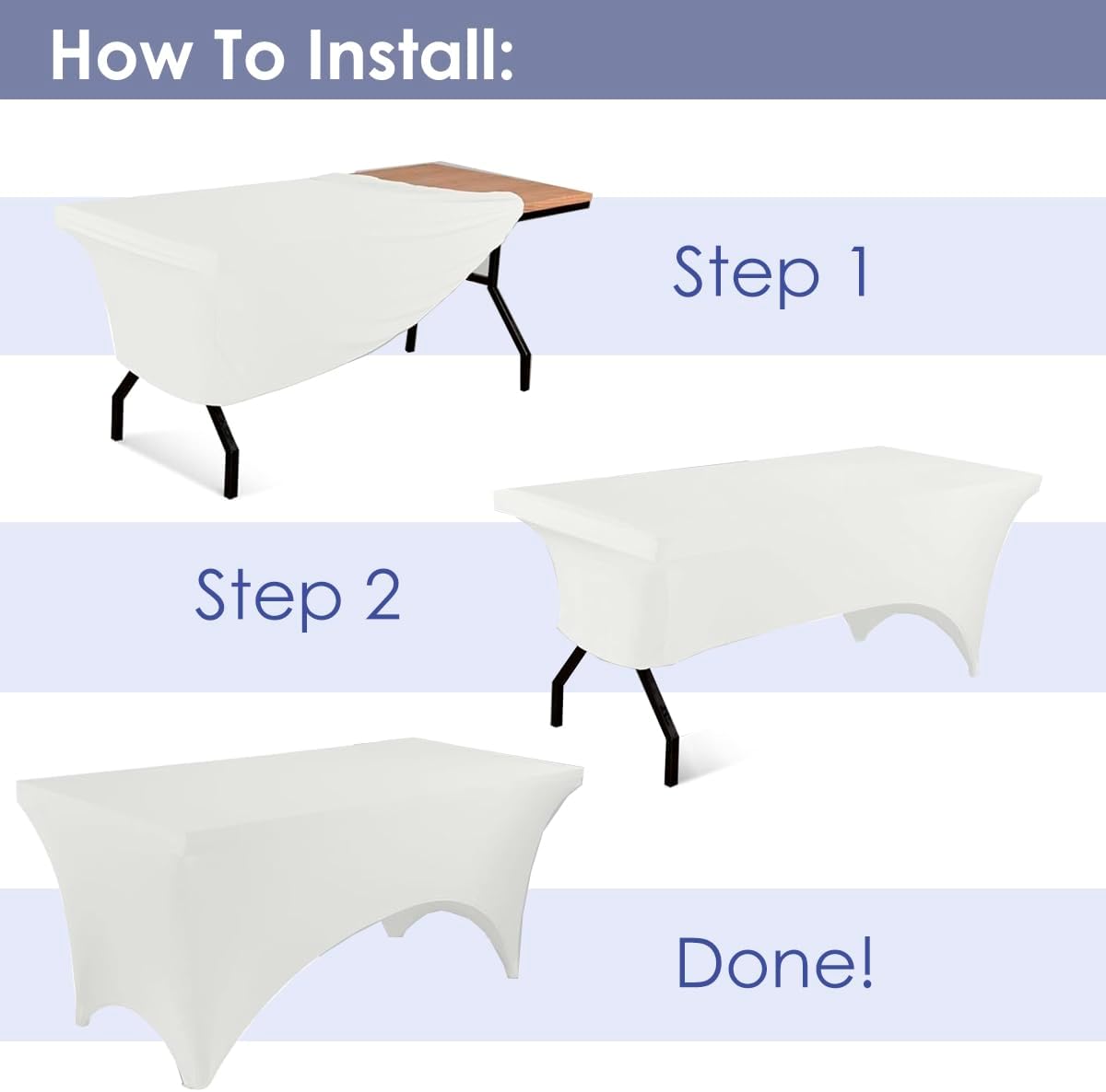 - Perfect Fit and Secure Design: Designed for 6-foot tables (72L x 30W x 30H Inches), this two-way stretch spandex cover features reinforced leg pockets to keep it firmly in place, preventing slipping for a sleek, professional look.