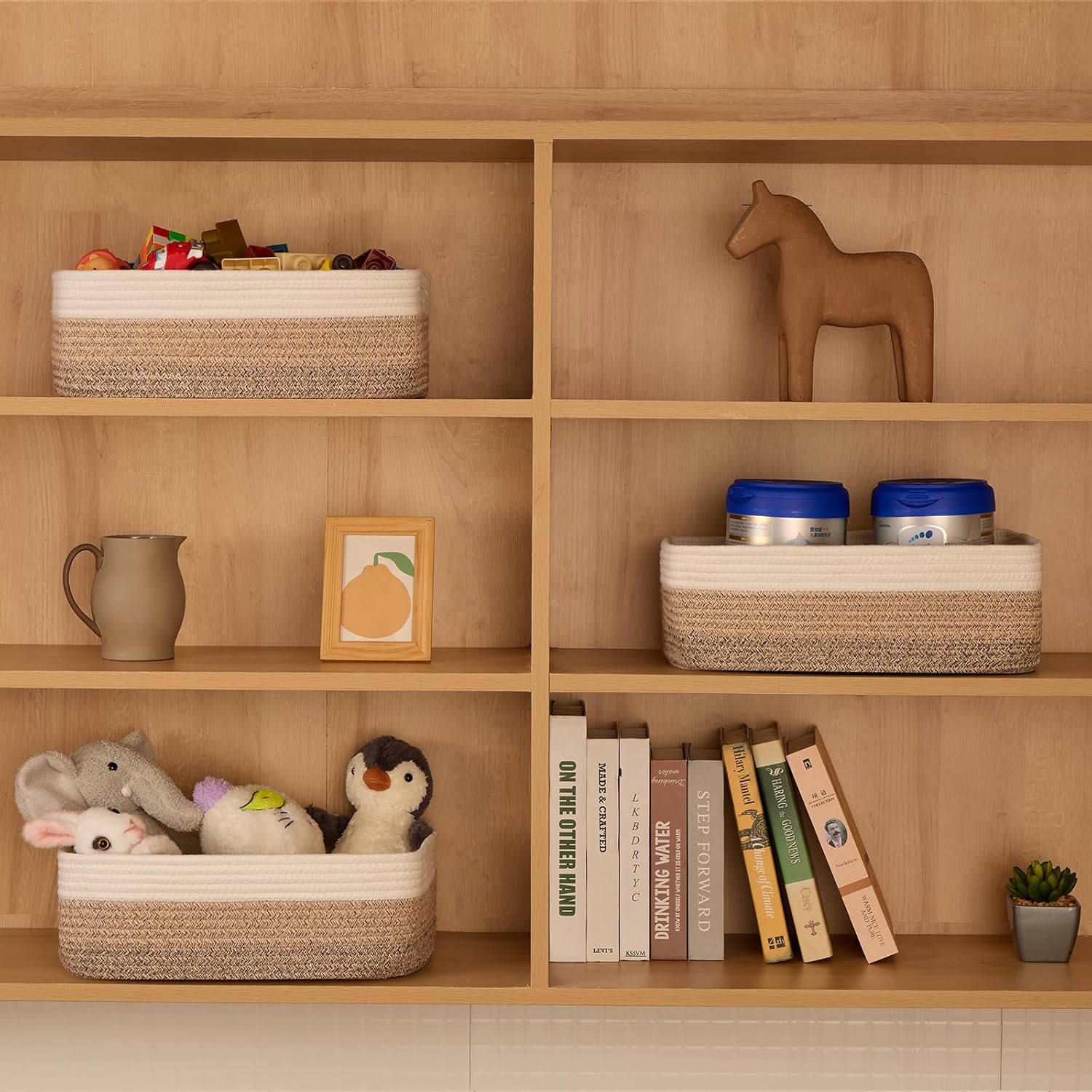 - [ Stylish & Versatile ]: Great for organizing small items on desks, in closets, wardrobes, or dressers—these cute baskets add texture to any living room, bedroom, or bathroom, appealing to fans of modern minimalist design