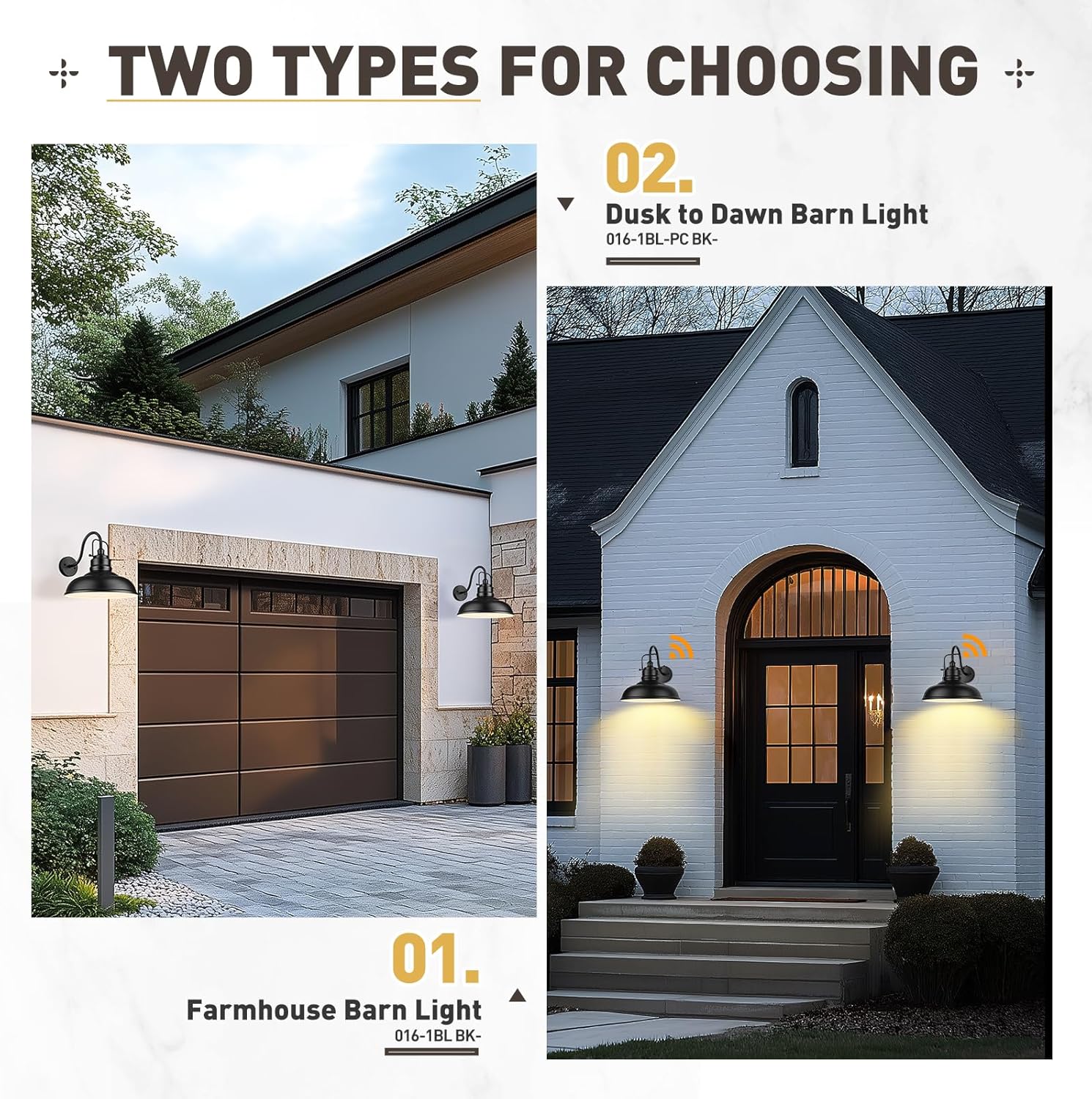 - GOOSENECK DESIGN & WEATHER RESISTANCE: Featuring a durable metal dome shade and elegant gooseneck arm design, these black exterior wall lightings are made of sturdy metal construction in a matte black finish with a white interior. Waterproof and anti-rust, it was durable while adding a unique atmosphere to your house.