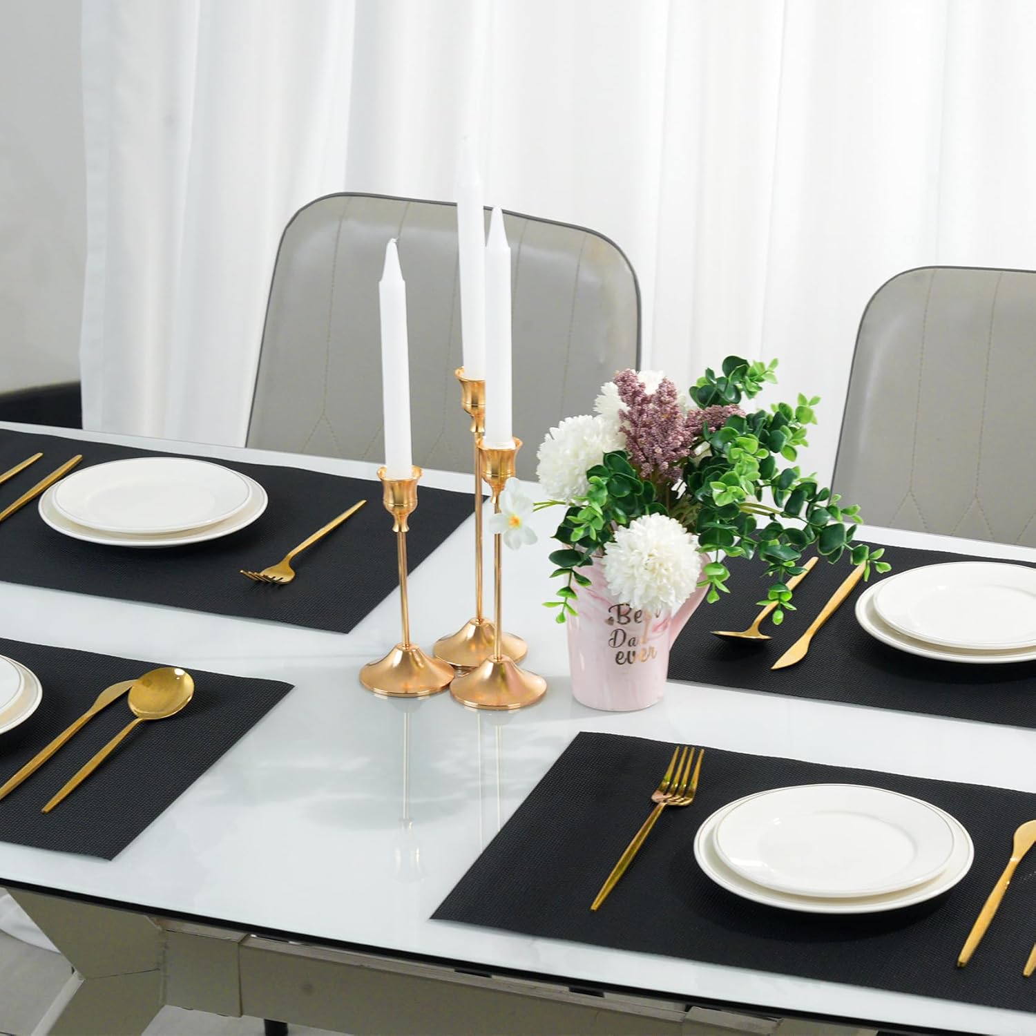 Placemats Set of 12,Non-Slip PVC Weave Table Mats Easy to Clean,Heat Resistant Place Mats for Kitchen Dining Table Decoration Indoor Outdoor,Black