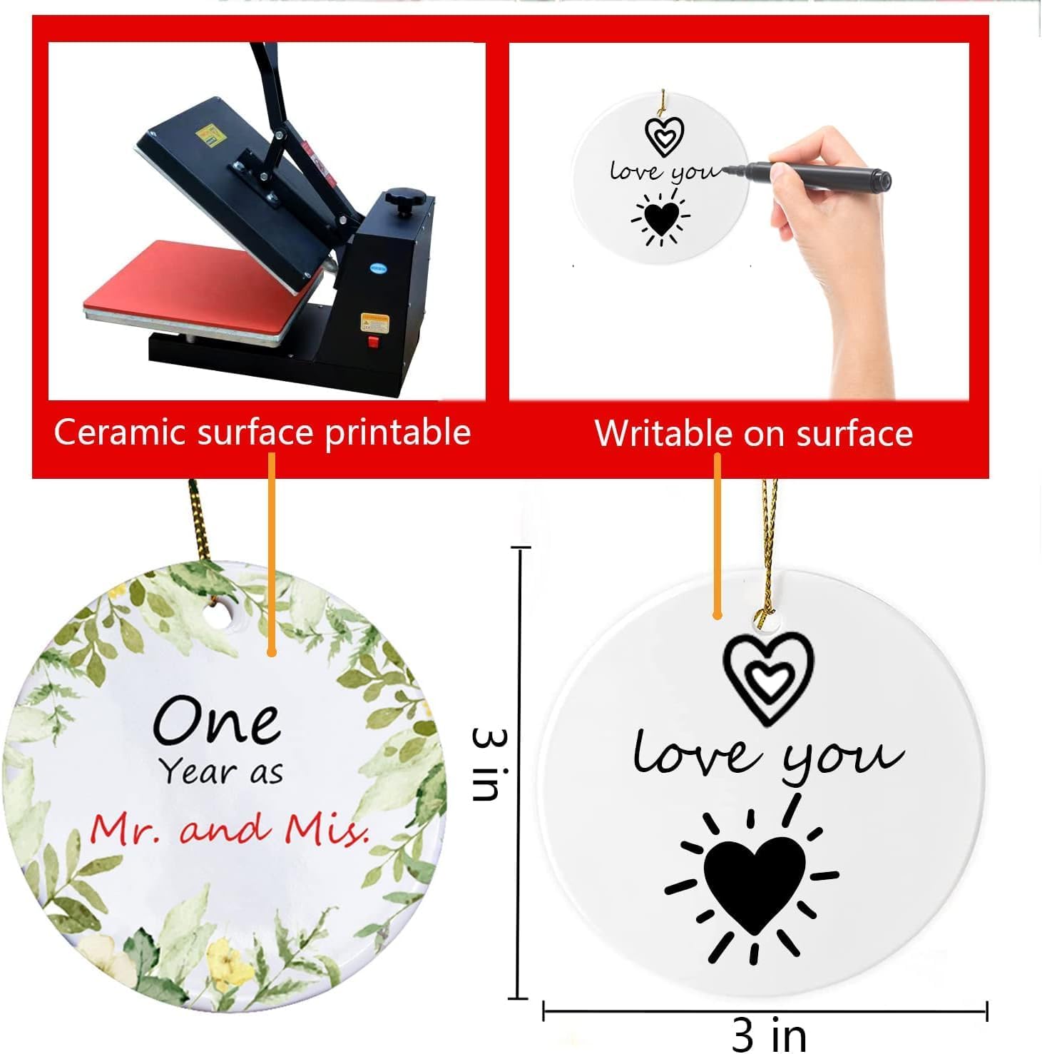 - Sublimation Ceramic Blanks: Featuring one glazed & one matte surface, these premium porcelain ornaments provide a smooth base for heat press (360°F/200s recommended) and UV printing. Perfect for permanent, vibrant customization of personalized designs.