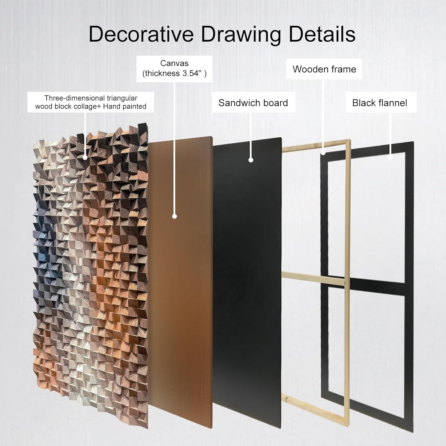 - Unique geometric design: This wall decoration panel adopts a unique triangular pine wood block splicing design, presenting a highly modern 3D stereoscopic effect, adding artistic atmosphere and visual hierarchy to your home or commercial space.