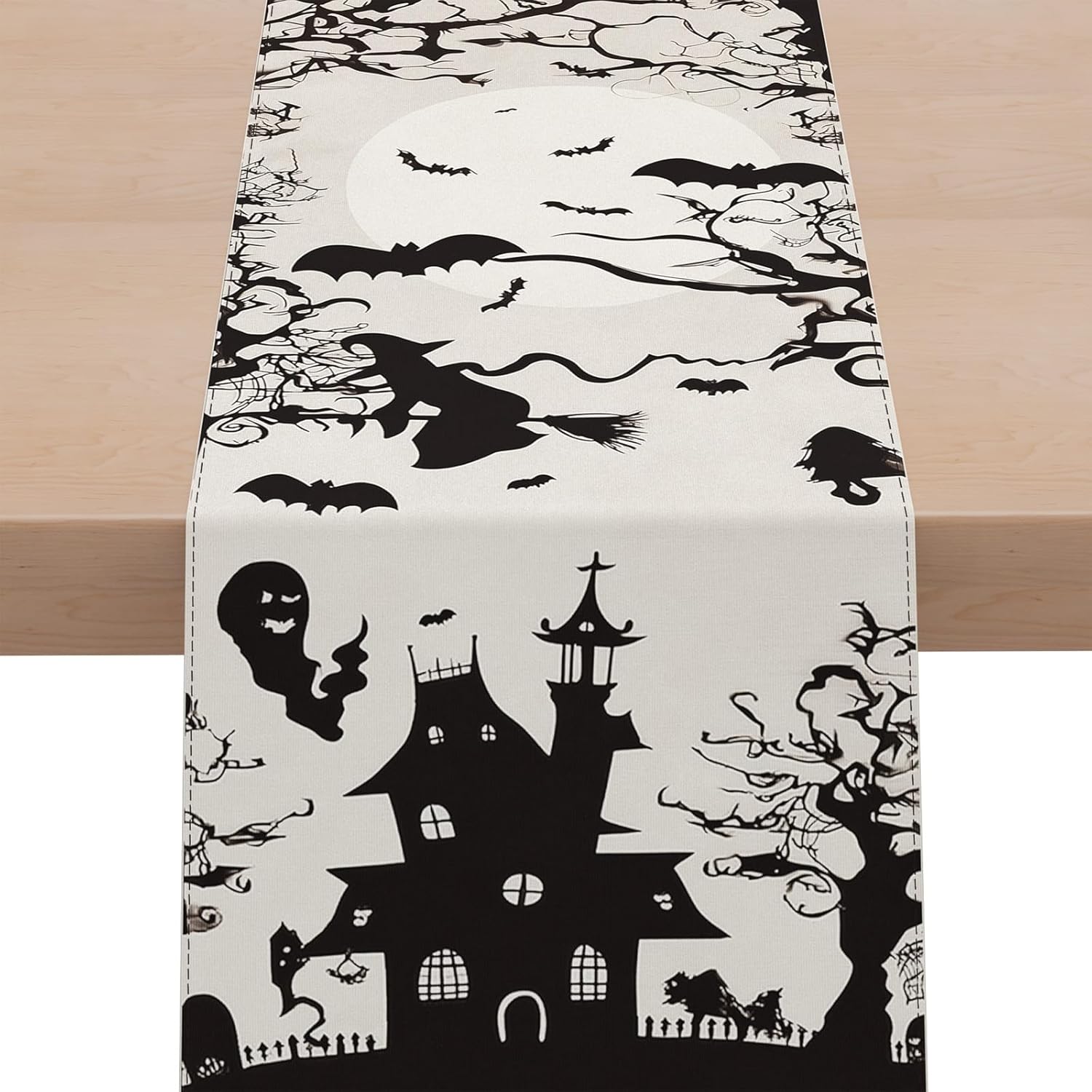 Halloween Table Runner,72 Inches Spooky Haunted House Bats Tree Ghost Witch Table Runner for Halloween, Table Decoration/Party Dinner Table Decor,Kitchen,Mantel,Bedroom Decoration