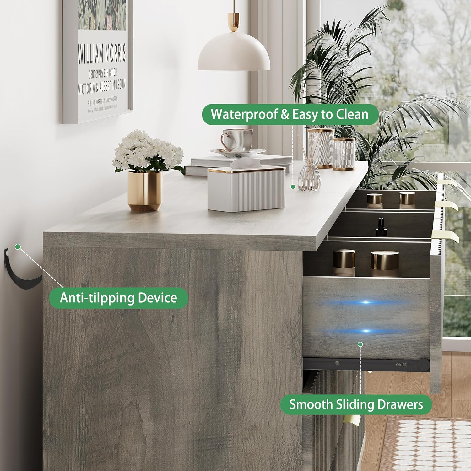 - 【Large Storage Capacity】The dresser for closet features 7 deep drawers that provide plenty of room for organizing clothing, bedding, cosmetics, or jewelry, helping you maintain a neat and tidy space. The wide wooden tabletop can serve as a dresser TV stand or display your decorations such as photo frames, plants or mirrors. Perfect for bedroom, living room, hallway, entryway