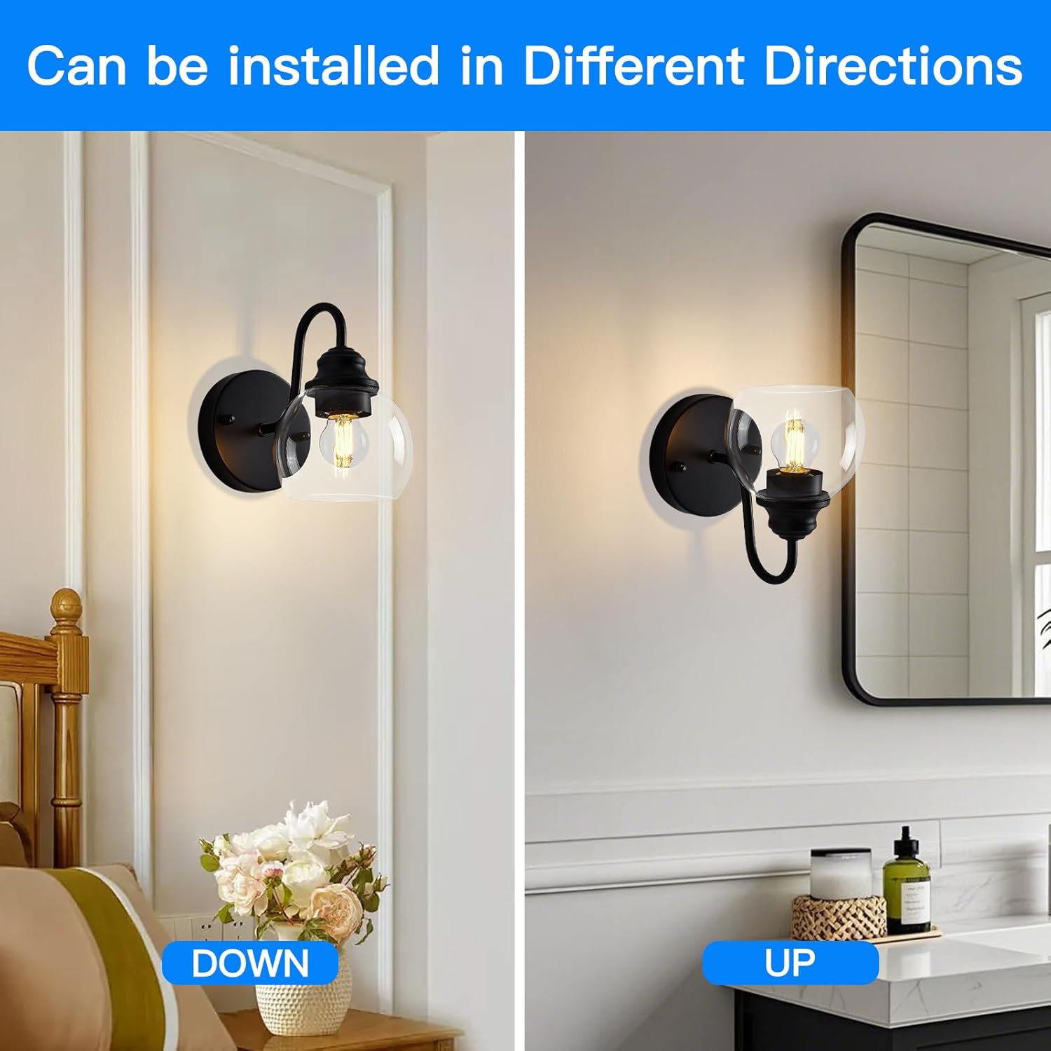- 【Lights Set Upward or Downward】: These wall mounted light fixtures make it easy to install decorative up/down wall lights in many different areas you want, the modern wall light fixture can be installed downward as a bathroom vanity light or bedroom wall light, or installed upward as a fireplace light or dining room wall light, so this wall light can go into any style and will not look so obtrusive, instead it will add decoration to your space.