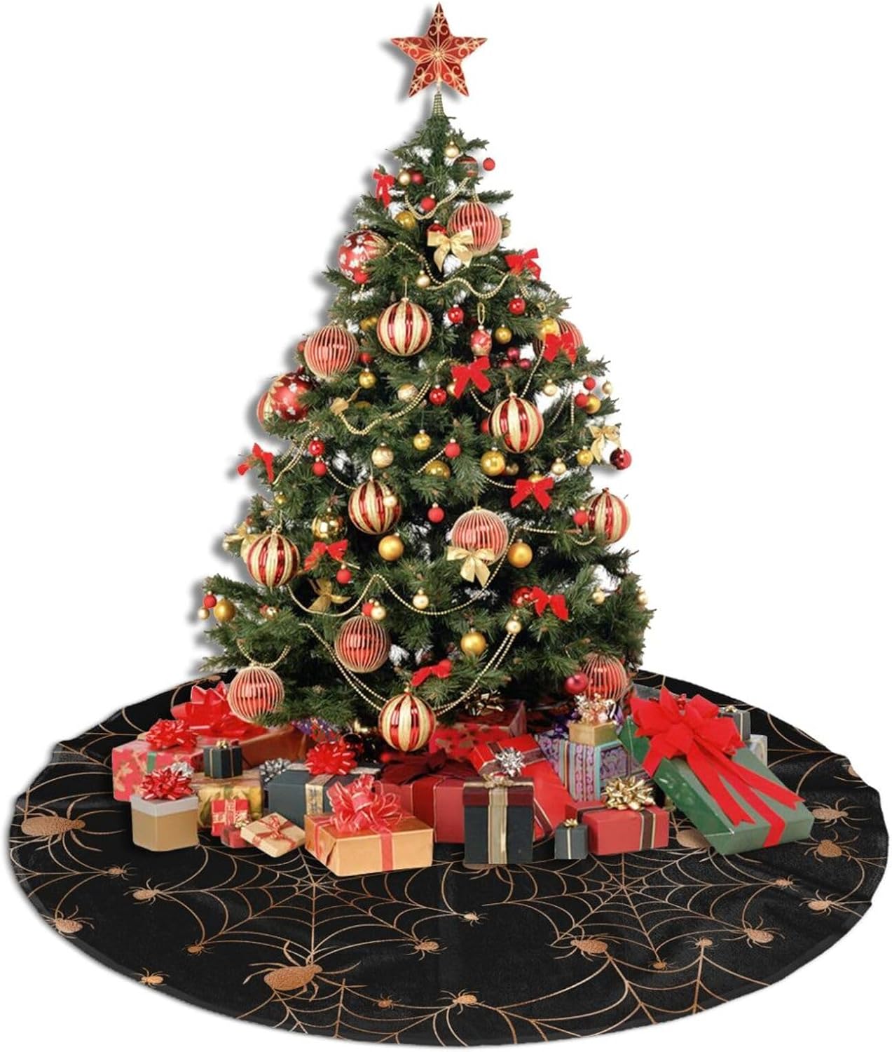 Christmas Tree Skirt,Gold Spider Web Xmas Tree Skirt Rustic Farmhouse Tree Skirt for Christmas Decor Xmas Holiday Home Party Decorations30