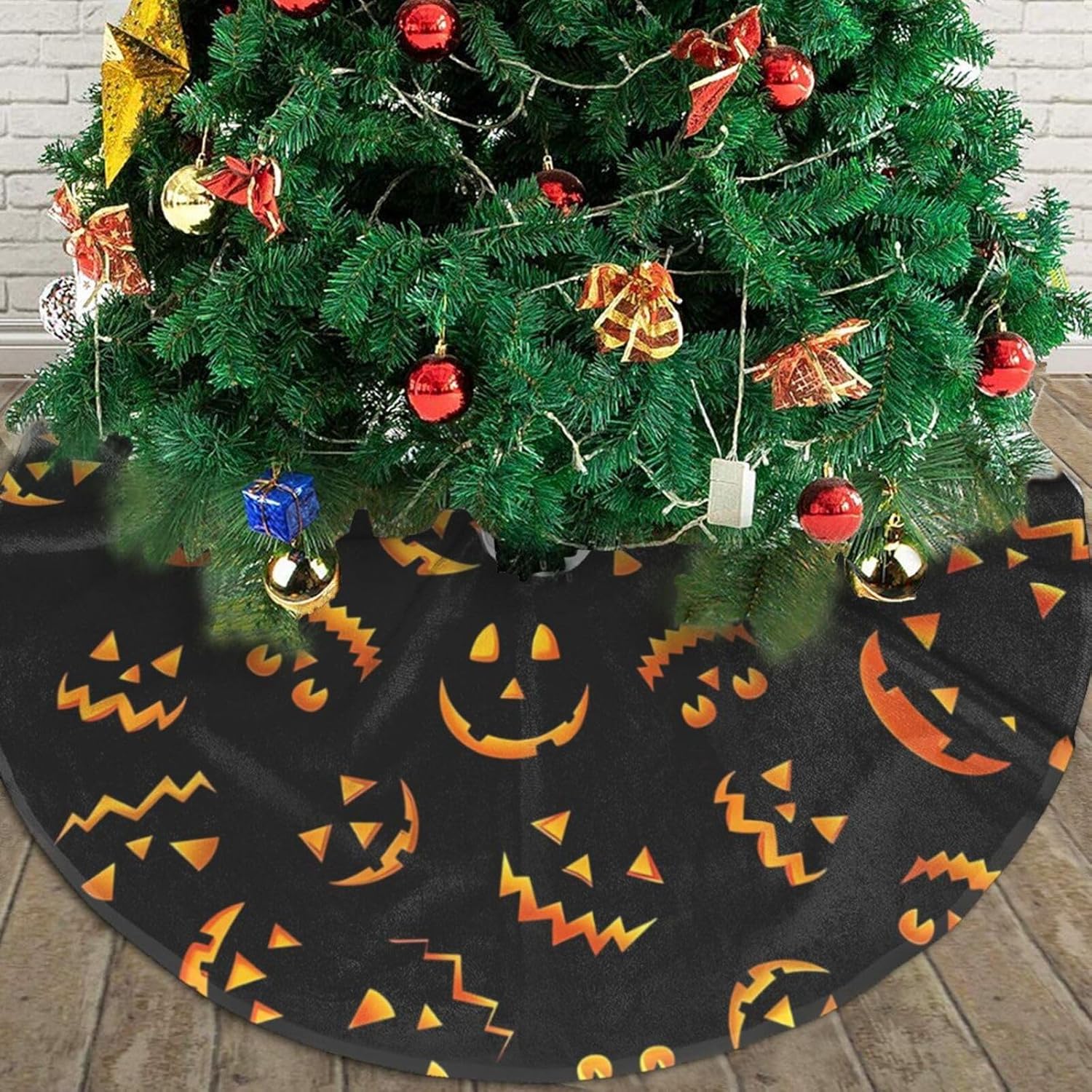 - Blending Classic with Innovation: Our Christmas tree skirt features a distinctive Jack O Lantern Pumpkin Smiles pattern, merging traditional charm with a touch of modern elegance. This skirt promises to be a standout piece in your Christmas decor, setting a warm and romantic festive ambiance for your home. Don't miss out on this exquisite addition to your holiday season!