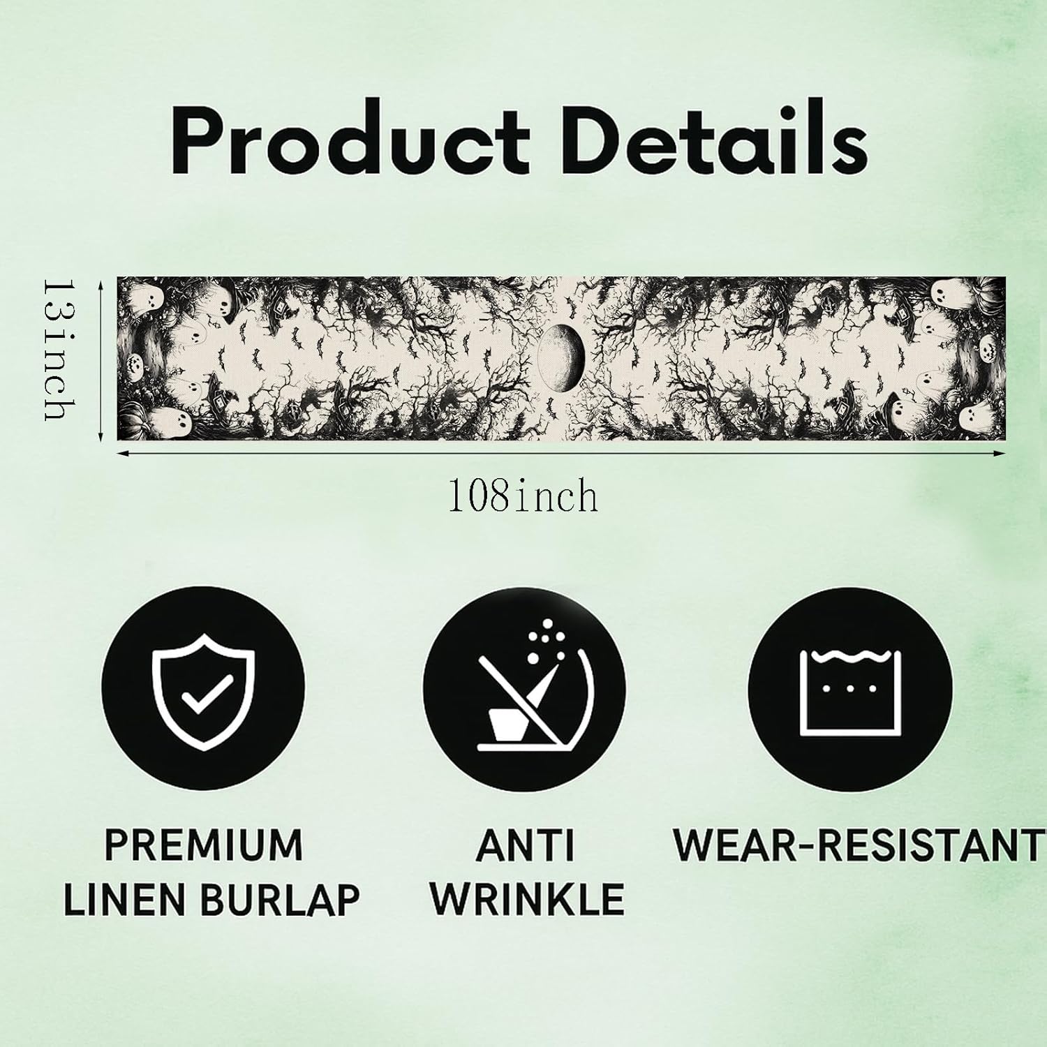 GPGHE Halloween Table Runner Black Ghost Holiday Burlap Table Decoration Indoor Outdoor Home Decor Party Supply 13 x 108 Inch