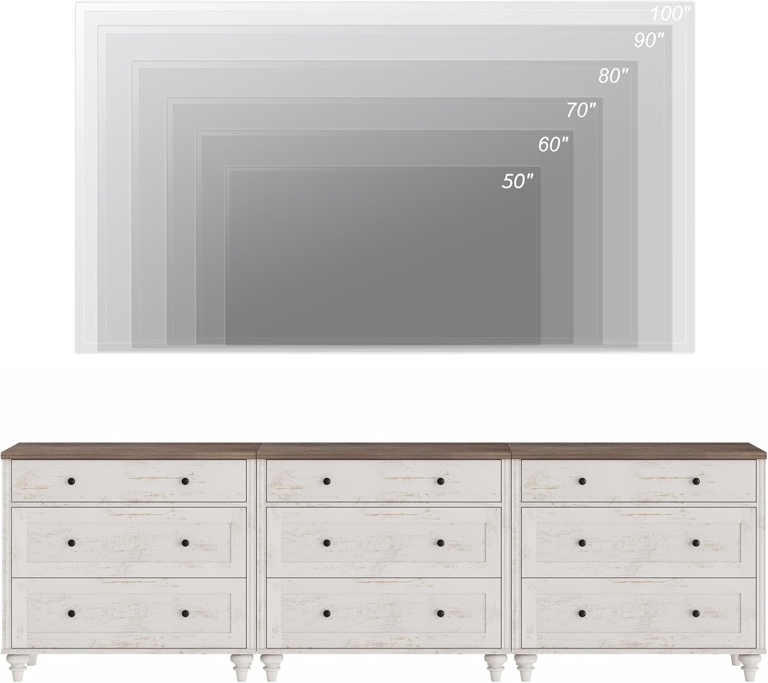 - 【3-in-1 Multipurpose Dresser】The large dresser can be used together as 9 drawer dresser or tv stand for 100 inch tv, or used separately as 3-drawer dressers.With distresser suface is very classic and elegant which blends in easily with any decor. It is ideal as a baby dresser, kids dresser and console table, etc.