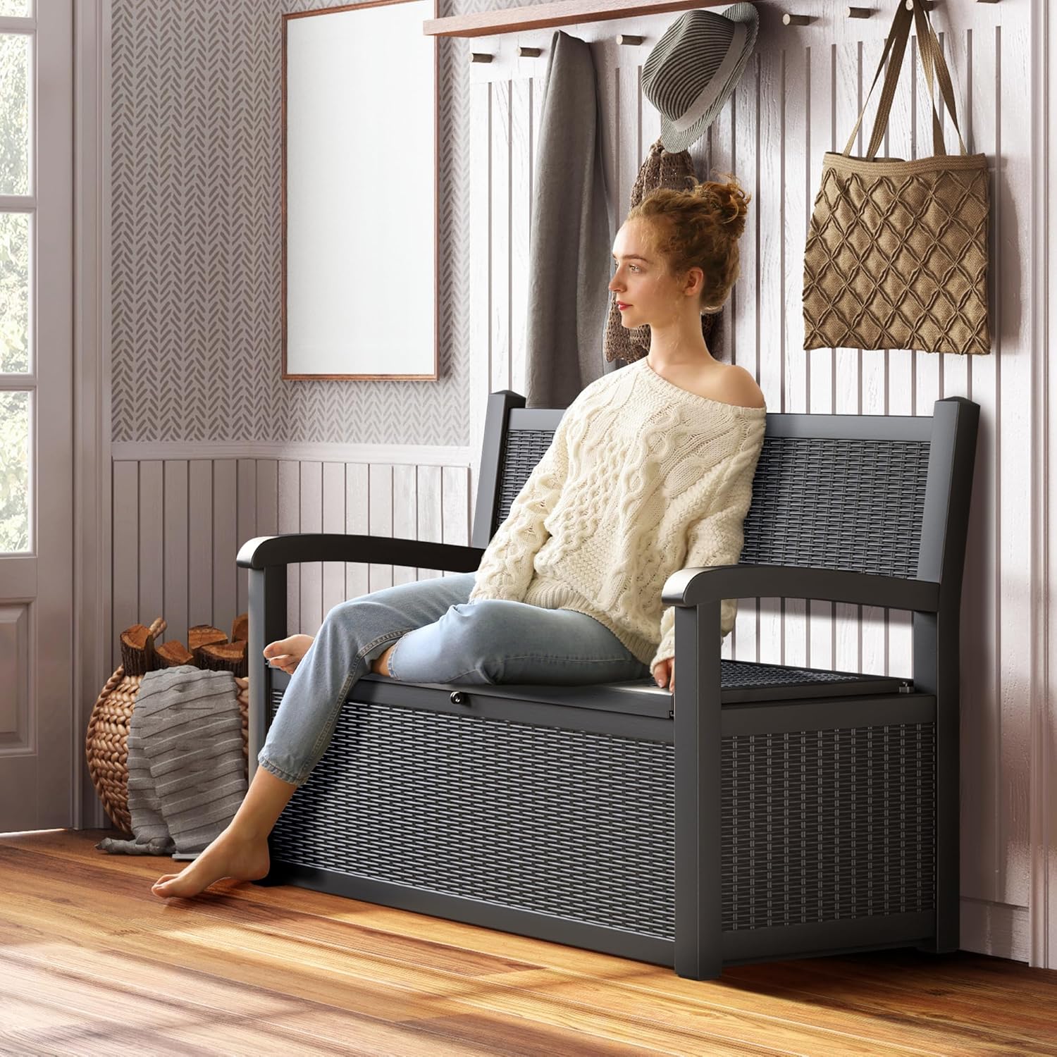 - All-Weather Protection: Crafted from weather-resistant resin, this outdoor bench with withstands sun exposure, moisture, and temperature changes while maintaining its structural integrity season after season, this porch storage stands tough for long-lasting protection.